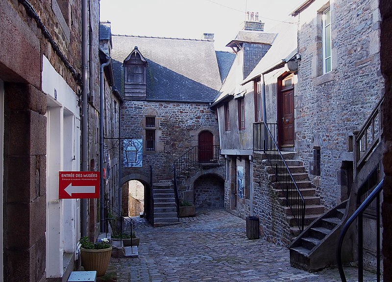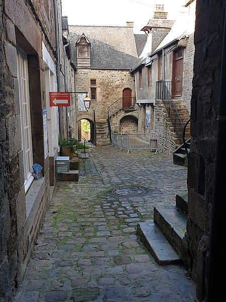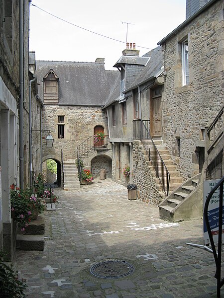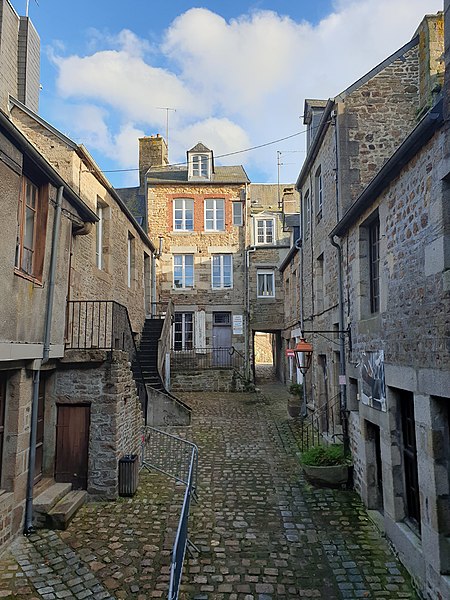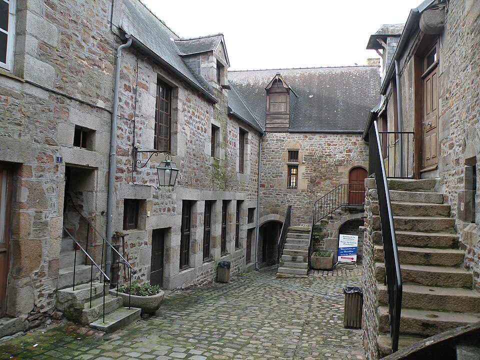 Situés autour de la cour du Foyer, les immeubles forment un espace public intégré au réseau viaire de Villedieu-les-Poêles-Rouffigny, commune déléguée du département de la Manche en Normandie. La cour se trouve au nord du centre-ville et on y accède par deux porches à l'est et à l'ouest ; l'un de ces porches communique avec la rue du Général-Huard, partie de l'axe principal de la ville. Une étude de bâti menée dans la salle dite « du foyer » et un relevé pierre à pierre du mur droit à l'entrée ont permis de proposer l'hypothèse d'un bâtiment caractéristique des XIIe et XIIIe siècles. Le relevé a mis en évidence de nombreuses traces d'ouvertures et des anomalies liées à diverses reprises de maçonneries et aménagements. Le bâtiment comporte en partie basse un cellier surmonté d'un niveau d'habitation. Il a été réduit en surface, comme l'atteste la troncature du cintre d'une ancienne porte, et le passage qui traverse aujourd'hui l'édifice est postérieur à sa période de construction. Une partie des bâtiments est actuellement occupée par le musée de la Poeslerie et la maison de la Dentellière. Les façades, les toitures et le sol de la cour sont inscrits au titre des monuments historiques par arrêté du 1er août 1975. Ces éléments témoignent de l'évolution architecturale et des remaniements successifs du site.