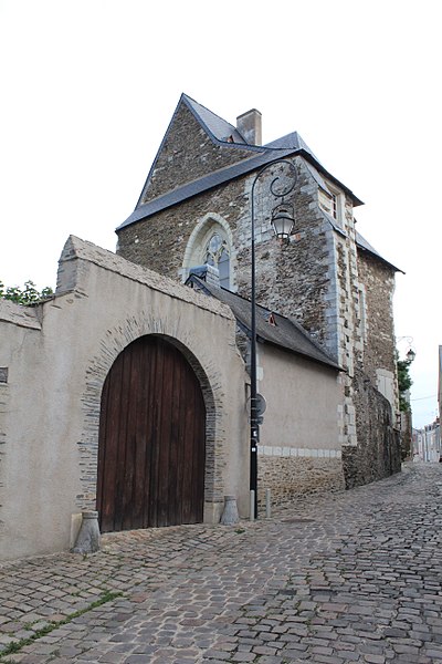 Le couvent des Augustins se situe au 8-10 rue de la Harpe, dans le quartier de La Doutre à Angers, sur la rive droite de la Maine ; il s'étendait au maximum sur environ 8 000 m2 entre les rues Vauvert, de la Harpe et Lionnaise et comprenait une église, un grand cloître, un réfectoire, un dortoir et un cimetière. Vers 1263, les frères saccistes fondent un couvent rue de la Harpe sur un terrain donné ; au début du XIVe siècle, la réforme des ordres fait succéder aux frères saccistes les Augustins, qui reorganisent le site autour de l'église. Vers 1468, Bertrand de Beauvau finance la restauration de l'église et des bâtiments conventuels ; la chapelle dite de la Passion, au sud-est de la nef, est construite peu après et porte ses armes sur l'une des clefs de voûte (vers 1480). Des travaux des XVIe et XVIIe siècles sont attestés par des éléments architecturaux : trois baies postérieures du bâtiment ouest du cloître et la cage hors-œuvre d'un escalier sur la face nord, des remaniements au XVIIe siècle et la datation 1634 gravée sur une lucarne du bâtiment subsistant rue de la Harpe, qui bouche une ancienne fenêtre du chœur encore visible. Le couvent s'agrandit en 1535 par l'achat du jardin et du logis de Chambellay, conservé jusqu'à la Révolution sur le site de l'hôtel d'Ambray, 5 rue Vauvert. Un corps d'entrée menant vers l'église, dit la grande porte, est réédifié en 1626 ; il n'en subsiste aujourd'hui qu'un arc visible au 46 rue Lionnaise, ainsi que les vestiges d'un porche reliant le cloître à l'entrée de l'église. L'église est alors réaménagée : la porte occidentale en plein cintre de la nef n'est plus que trace et plusieurs baies de la chapelle de la Passion datent de cette période ; trois des six chapelles bordant le flanc sud appartiennent aussi au XVIIe siècle. Dans la première moitié du XVIIIe siècle, un puits est aménagé contre la tour d'escalier du logis ouest, qui est percée d'oculi. Le couvent est démantelé à la Révolution ; l'église est détruite vers 1795, à l'exception d'une partie du mur nord du chœur appuyée au corps de 1634 et de la chapelle de la Passion. Cette dernière est rachetée au milieu du XIXe siècle par les sœurs de la Providence de Saint-Vincent-de-Paul, qui sont vraisemblablement à l'origine du portail néo-gothique en arc brisé qui la ferme aujourd'hui. Le plan cadastral de 1840 montre la division alors en deux propriétés : une petite parcelle rue de la Harpe (bâtiment de 1634 et chapelle, section G 59) et une vaste parcelle relevant des fils du marchand de vin Auguste Vinay (section G 60). Sur cette dernière, les bâtiments conventuels sont reconstruits en 1871 par l'architecte Julien Moirin pour installer une manufacture de chaussures exploitée par Savaton puis par Octave Hamard à partir de 1881. Après la faillite de l'établissement en 1905, la Ville acquiert les lieux pour agrandir l'orphelinat Ambray et pour permettre le percement projeté de la "rue Guittet prolongée" jusqu'à la rue Auguste‑Michel ; le projet reste en suspens et l'usine est de nouveau louée à des industriels de la chaussure, puis revendue en 1923 à l'entrepreneur Goirand. Goirand transforme en 1934 le bâtiment de la chaudière en habitation sur des plans de L. Fayol ; cette maison de 1934 a été détruite en 2002. En 1960, un centre d'apprentissage du bâtiment s'installe après réaménagements, travaux probablement responsables des poteaux et planchers en béton et des redistributions observées dans l'aile nord ; en 1977 l'entreprise Méray‑Brisseau occupe les lieux, jusqu'au rachat ultérieur par la Ville. Depuis 1993, l'ancienne usine Savaton‑Hamard abrite le service municipal du Patrimoine historique, la base locale de l'INRAP et, jusqu'en septembre 2005, la Mission locale angevine. En 2012, une partie des bâtiments de l'usine est démolie dans le cadre d'un projet immobilier. En 2013, ne subsistent de l'ancien couvent que le bâtiment est de la cour du cloître (daté 1634) et la chapelle de la Passion, qui appartiennent à un particulier ; des constructions nord de l'ancienne usine de chaussures ont également été conservées. Le site est inscrit au titre des monuments historiques par arrêté du 19 décembre 1978 pour la chapelle en sa totalité, pour les façades et toitures du logis et pour le grand escalier. En juin 2012, des fouilles de l'INRAP menées sur 8 000 m2 ont mis au jour des niches funéraires. Le site peut être visité lors des Journées européennes du patrimoine.