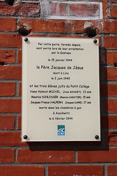 Le couvent des Carmes d'Avon, à Avon (Seine-et-Marne), présente un parc dont l'architecture est liée à celle du château de Fontainebleau. L'ensemble intègre l'ancien hôpital des Frères de la Charité, fondé au XVIIe siècle par la reine Anne d'Autriche ; le portail porte la date 1665. Construit au bord du grand canal du château, cet hôpital comprenait un moulin dont les revenus devaient couvrir les frais. Ruiné pendant la Révolution et dissous par le Directoire en 1796, il servit successivement de petit séminaire avant d'être confié aux rédemptoristes en 1860, qui en firent un lieu de mission avant d'être expulsés sous la Troisième République. À partir de 1920, les carmes déchaux, de retour d'exil, s'y installèrent et le bâtiment fut inscrit au titre des monuments historiques en 1926. À la demande du supérieur Louis de la Trinité, le Petit collège Sainte‑Thérèse‑de‑l'Enfant‑Jésus fut fondé en mars 1932 et ouvrit en octobre de la même année. Dirigé par le père Jacques de Jésus et, à partir de 1934, assisté par Philippe de la Trinité comme sous‑directeur, l'établissement fut agrandi cette même année pour mieux accueillir les élèves. D'abord voué à la formation religieuse, le collège s'ouvrit plus largement et accueillit principalement des élèves de l'aristocratie et de la bourgeoisie du nord de la France. Il comptait une centaine d'internes, de la sixième à la terminale, et le père Jacques y développa une pédagogie réputée innovante. Pendant la Seconde Guerre mondiale, le milieu carme responsable de la revue et de la collection Études carmélitaines fut un foyer actif de résistance au Troisième Reich. Parmi les figures liées à ce milieu figurent le père Jacques, mort en déportation pour avoir caché des enfants juifs, l'amiral Thierry d'Argenlieu, qui rejoignit Londres en 1940, et le père Philippe de la Trinité, membre de l'Assemblée consultative provisoire. Louis de la Trinité rejoignit également le général de Gaulle à Londres ; sur place, le père Philippe et le père Jacques participèrent à la résistance au sein du réseau Vélite‑Termopyles, et le collège hébergea des réfractaires, des professeurs juifs évincés et des enfants juifs. À la suite d'une dénonciation, la Gestapo intervint le 15 janvier 1944 : le père Jacques et trois enfants juifs furent arrêtés et déportés, et le collège fut fermé. Ces événements de l'Occupation sont évoqués dans le film Au revoir les enfants de Louis Malle (1987). Après la Libération, le Petit collège reprit ses activités sous l'autorité du père Paul‑Marie de la Croix jusqu'à sa fermeture en 1960, puis les locaux accueillirent l'INSEAD pendant trois ans. Le couvent conserve sa fonction religieuse : il abrite les postulants et les novices carmes de la Province de Paris et fonctionne toujours comme centre spirituel, proposant de nombreuses retraites.