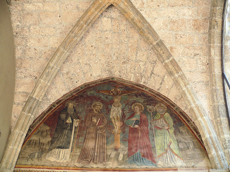 Le couvent des Cordeliers, ancien couvent franciscain d'Embrun (Hautes‑Alpes), abrite aujourd'hui l'office de tourisme de la ville. Les Frères mineurs furent établis à Embrun par une bulle du pape Clément VI datée du 7 mars 1352, visant à lutter contre les Vaudois. Le couvent, dont la fondation remonte au XIIIe siècle au temps des Dauphins de Viennois, dépendait de la province de Saint‑François, dont le chapitre général se tenait à Moirans. Il comptait alors treize moines, dont deux prenaient quotidiennement leur repas à la table de l'archevêque Humbert. Bâti à l'origine hors de la ville, il fut détruit au XIVe siècle et rebâti dans Embrun par le Dauphin Humbert II, qui assura aux religieux une redevance annuelle en froment et en vin "pendant l'espace de mille ans". L'église du couvent fut édifiée entre 1413 et 1443 et consacrée en 1447. Sous le règne de Louis XIII, la citadelle d'Embrun fut rasée et les terrains ainsi libérés furent attribués aux Capucins, dont la présence avait été autorisée par lettres patentes en 1633. Le nouveau couvent fut construit de 1644 à 1645 par l'archevêque Guillaume IX d'Hugues, grâce à la générosité de donateurs — notamment Chantaraine des Crottes et le sacristain Hugues Emé, qui fit don de sa bibliothèque — et à un apport de six mille livres. Il était orné de fresques remarquables et abritait une statue de saint Antoine, témoin d'une présence des Antonins. Le nombre de religieux déclina progressivement, passant de trente à quelques moines puis à un ou deux. Après la Révolution, l'église fut transformée en halle aux grains et partiellement détruite par un incendie ; la nef et le collatéral sud furent détruits en 1912. Le collatéral nord subsistant accueille aujourd'hui l'office de tourisme, et des décors peints ont été découverts sous des enduits de plâtre puis restaurés de 1969 à 1971 ; ces peintures murales sont l'œuvre d'artistes italiens des XVe et XVIe siècles. L'ancien couvent des Cordeliers bénéficie d'une protection au titre des monuments historiques : le réfectoire et d'autres vestiges ont fait l'objet d'une inscription le 19 février 1971, et quatre chapelles latérales ornées de peintures murales (restes de l'église) ont été classées par le même arrêté. Il subsiste aujourd'hui le réfectoire, des parties du cloître en propriétés privées et de magnifiques fresques réalisées par des peintres italiens des XVe et XVIe siècles.