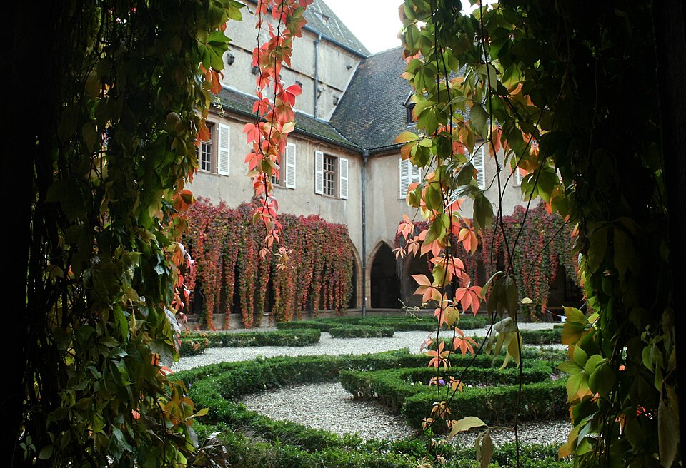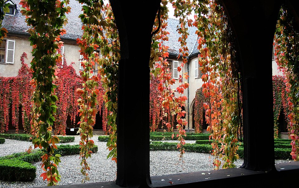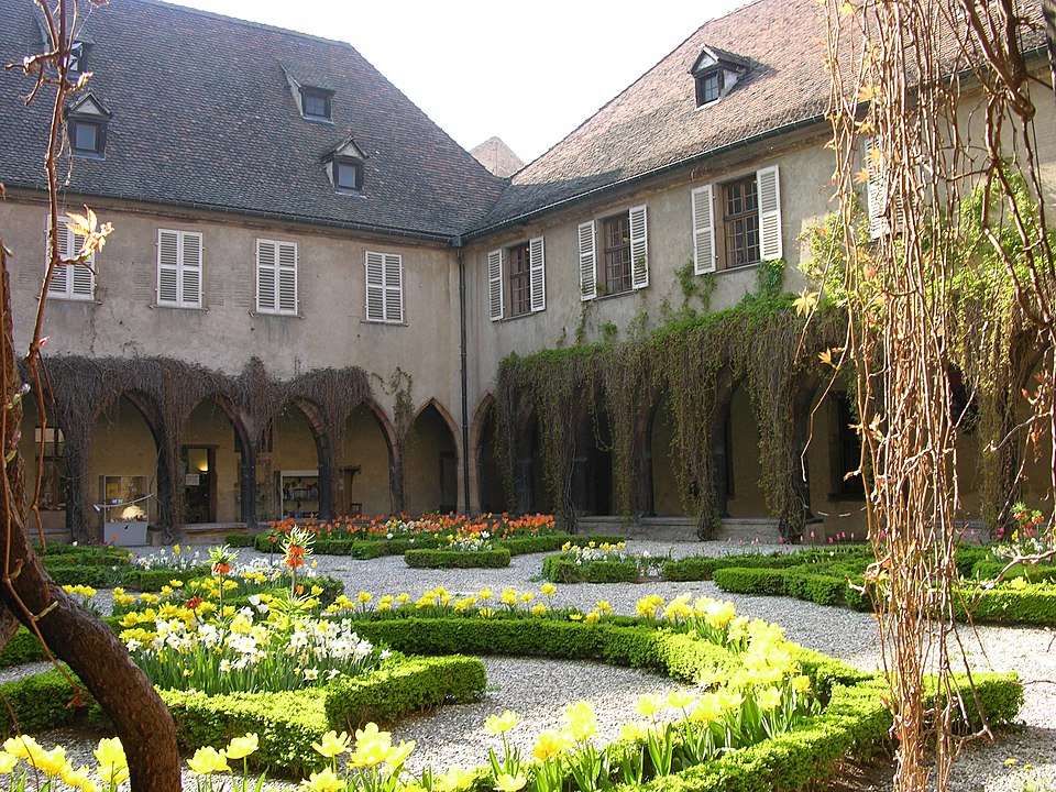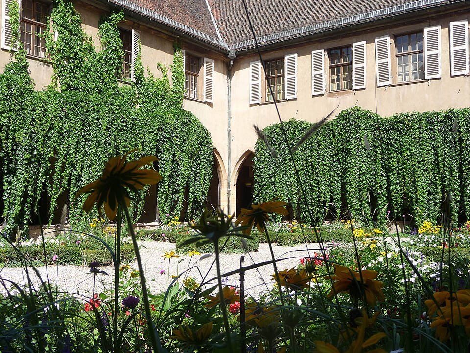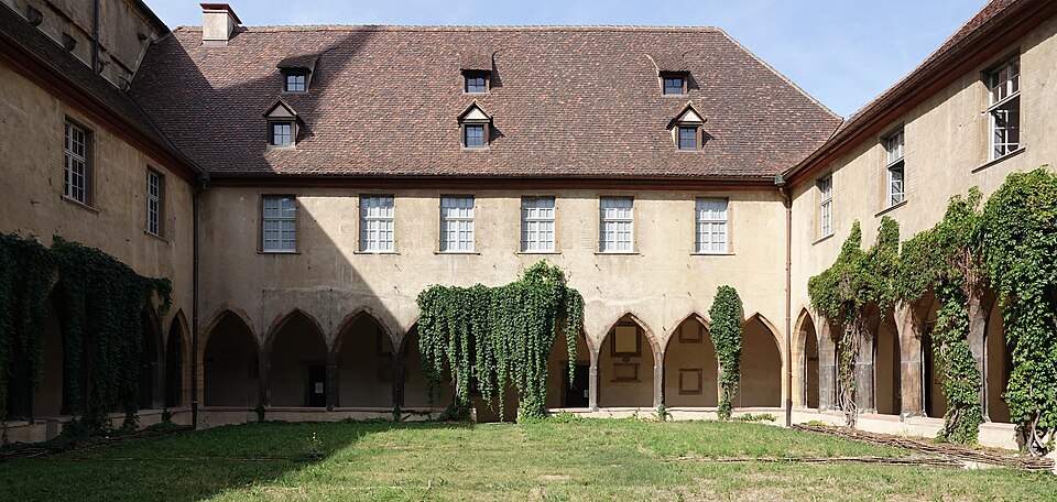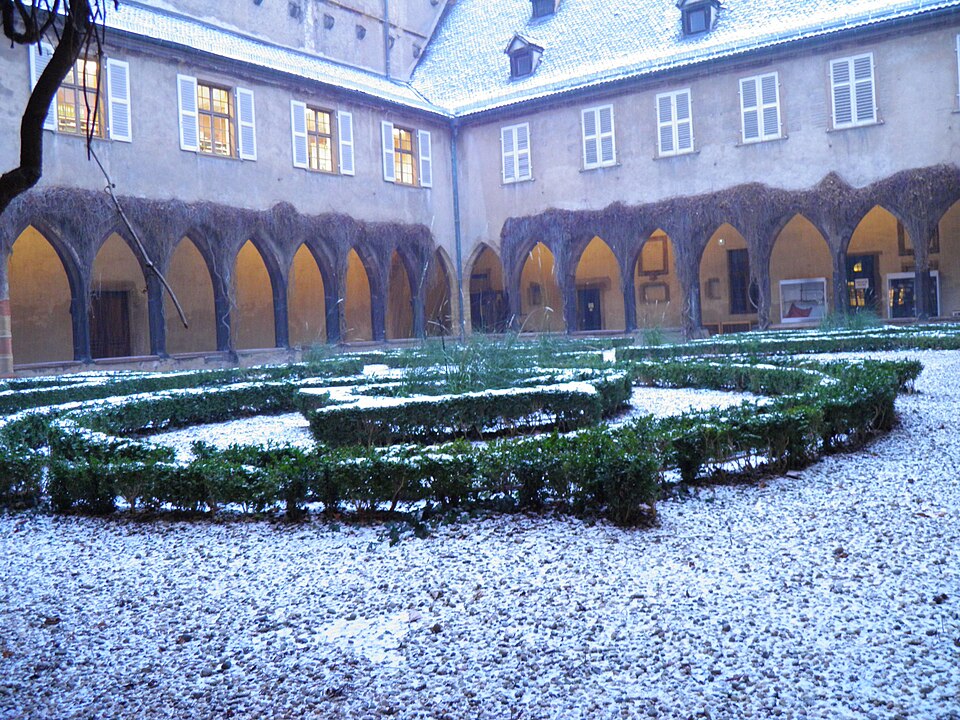 Le couvent des Dominicains de Colmar, également appelé église des Dominicains, se situe place des Dominicains et 1, place des Martyrs-de-la-Résistance, à Colmar (Haut-Rhin). L'église a été bâtie en 1289 par l'ordre mendiant des Prêcheurs, dit Dominicains, arrivé à Colmar vers 1260. Le chœur a été édifié avant 1300, la nef remonte au début du XIVe siècle et a été achevée en 1346. Pendant la Révolution française, l'édifice fut transformé en magasin d'artillerie ; la ville l'acheta en 1807 pour en faire une halle aux blés, puis il fut rendu au culte en 1898. L'église abrite dans son chœur La Vierge au buisson de roses, retable peint par Martin Schongauer en 1473, ainsi qu'une série de vitraux du XIVe siècle. Le cloître, la partie la plus ancienne, date du XIIIe siècle ; il subit un incendie en 1458 et conserve des peintures murales de la fin du XVe siècle illustrant le cycle de la Passion. Les bâtiments conventuels, élevés vers 1300 et reconstruits au XVIIIe siècle, furent transformés en caserne de gendarmerie de 1795 à 1871, utilisés comme école préparatoire d'instituteurs de 1873 à 1940, puis accueillent depuis 1951 la bibliothèque municipale. Le cloître et l'église sont classés au titre des monuments historiques depuis le 2 novembre 1948. L'église présente un chœur voûté de cinq travées, une abside à cinq pans d'octogone et une nef de six travées ; sa structure repose sur de frêles colonnes sans chapiteaux et un plafond en bois, offrant un intérieur volontairement austère mais lumineux. Les vitraux du début du XIVe siècle représentent des scènes de la vie du Christ. Le cloître se compose d'arcades sans réseau articulées autour d'un rectangle irrégulier. Parmi les éléments remarquables figurent le retable de Schongauer, des fresques du XVe siècle et des stalles de chœur du XVIIe siècle. Des vues photographiques montrent l'église de nuit, le bâtiment depuis le cloître et la Vierge au buisson de roses. Le site associe aujourd'hui valeurs religieuses, patrimoniales et culturelles, la bibliothèque municipale occupant les anciens bâtiments conventuels.