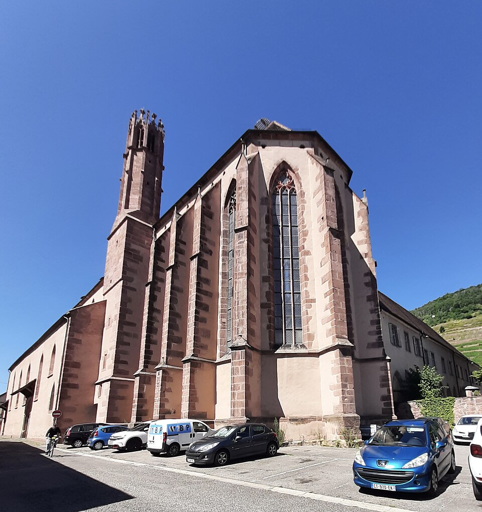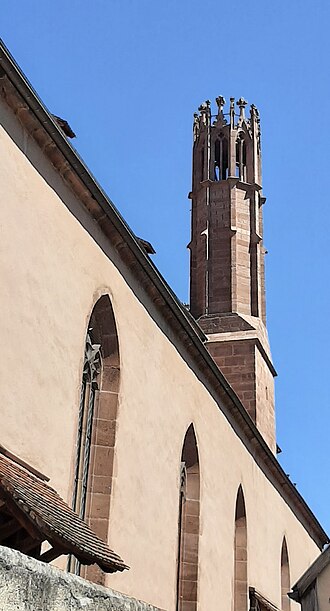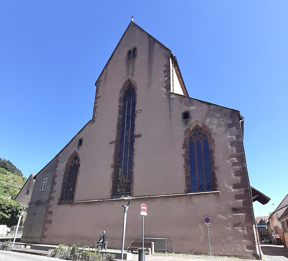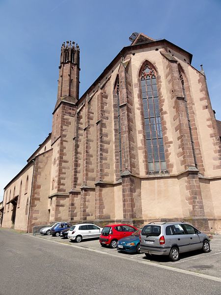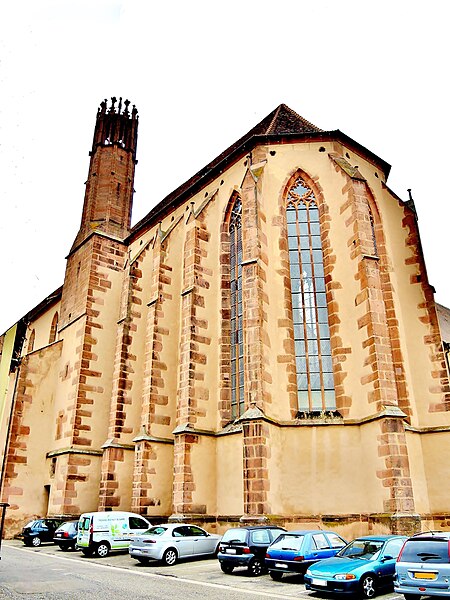L'église est un édifice orienté : elle comprend une nef plafonnée de cinq travées avec vaisseau central et bas-côtés, et un chœur voûté de quatre travées avec chevet à trois pans ; l'ensemble intérieur reste sobre, conforme à l'idéal de pauvreté des Dominicains. À la jonction du chœur et de la nef se dresse un clocher octogonal posé sur une base carrée, et les façades extérieures sont crépies. La nef présente de grandes arcades brisées reposant sur des piles rondes à bases carrées sans chapiteaux, un portail sud transformé à la fin du XVe siècle et des vestiges du portail primitif, dont deux anges thuriféraires qui encadraient probablement une Vierge à l'Enfant. La décoration peinte, d'abord dépouillée, s'enrichit à partir de la seconde moitié du XVe siècle ; on y retrouve des représentations datées (1493 et 1498), des armoiries de la famille Stoer et des peintures datables de la fin du XVe siècle. Le chœur, dont les clés de voûte portent les armes de Burcart d'Illzach et des motifs religieux, est largement éclairé par de grandes baies en arc brisé à trois lancettes.