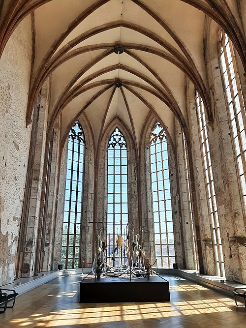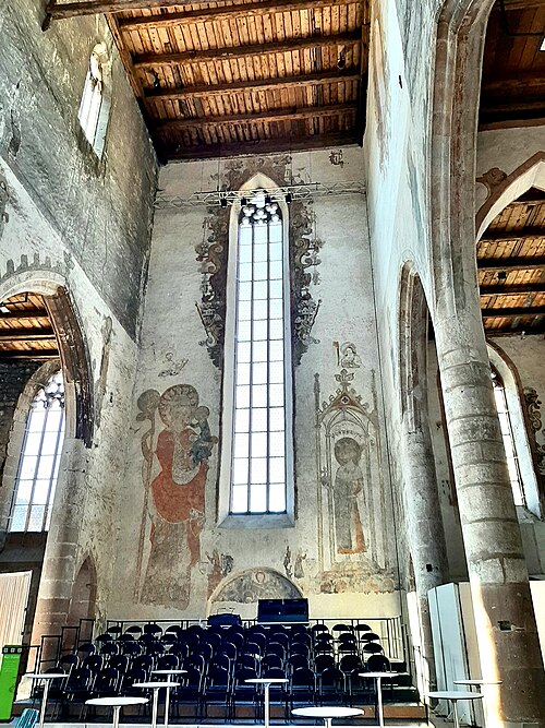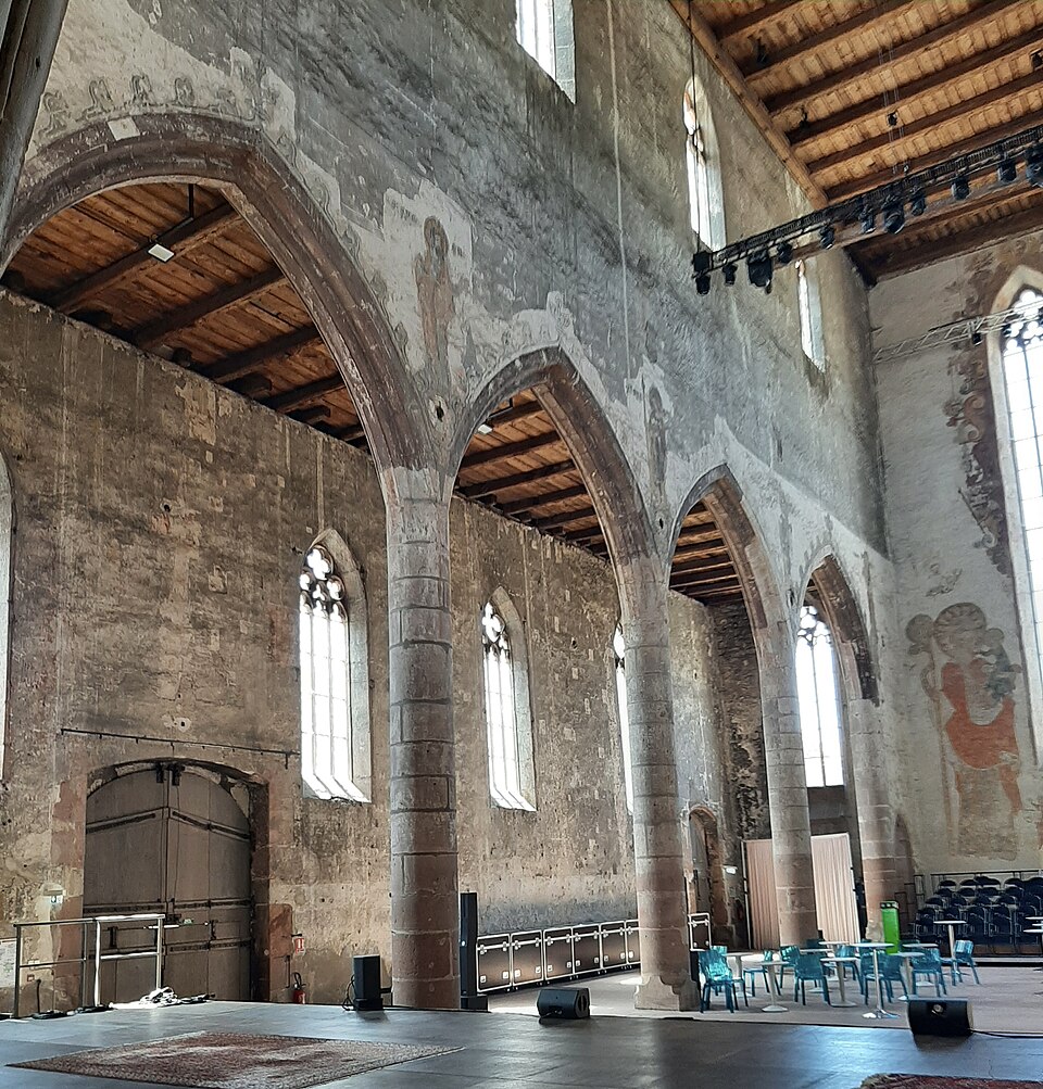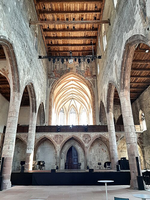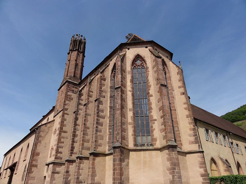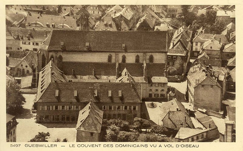 Le couvent des Dominicains de Guebwiller, dans le Haut-Rhin (Collectivité européenne d'Alsace), a été fondé en 1294 par l'achat de la maison de douane où la communauté s'installe. La construction de l'église débute au début du XIVe siècle : la nef est entreprise en 1306, le chœur est commencé en 1312 et porte un millésime de 1322 sur un contrefort. Les bâtiments conventuels étaient largement achevés en 1339 ; de nouveaux travaux s'amorcent au XVe siècle avec des agrandissements entamés à partir de 1420 et des transformations importantes dans la seconde moitié du XVe siècle, notamment la construction du cloître en 1468 et du réfectoire en 1478. Des campagnes sont encore menées au XVIIIe siècle (1709–1719) et un bâtiment annexe est ajouté au nord en 1732; des restaurations ont également été réalisées au XXe siècle. Après la Révolution, l'ensemble connaît de nombreuses réaffectations : l'église sert d'écuries en 1814, devient dépôt de teinturerie en 1826, puis, après l'achat par l'industriel Jean-Jacques Bourcart en 1836 et sa donation à la ville, la nef est transformée en halle de marché et le chœur aménagé pour des manifestations culturelles. Les bâtiments conventuels ont successivement été utilisés comme hôpital militaire, puis, après 1837, comme hôpital civil auquel on ajoute une chapelle protestante après 1856. L'église est classée monument historique en 1920 et le reste de l'ancien couvent l'est en 1976; entre-temps des travaux de restauration de la toiture et des piliers sont réalisés dans l'entre-deux-guerres et des campagnes de conservation des peintures se déroulent entre 1941 et 1972. En 1948, une partie du cloître et le chœur accueillent un musée historique ; la nef est aménagée en salle de concert en 1962. Le conseil départemental du Haut-Rhin acquiert le site en 1990, fait réaliser des fouilles et des campagnes de restauration, et y installe un centre culturel musical ; depuis 2013, le couvent fonctionne comme centre culturel de rencontre dédié à la musique, aux arts numériques et aux arts botaniques.