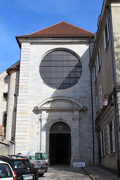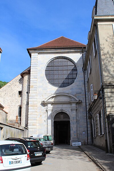 Après la Révolution, les congrégations furent supprimées et les bâtiments déclarés biens nationaux ; en 1795 l'église devint une salpêtrière. D'importantes statues furent dispersées et se retrouvent aujourd'hui notamment au musée du Louvre, au Metropolitan Museum of Art de New York et au musée des beaux‑arts et d'archéologie de Besançon, où figure le gisant de Jean de Bourgogne par Pépin de Huy. Le maître‑autel dessiné par Nicolas Nicole et la chaire furent transférés à la collégiale Saint‑Hippolyte, et l'orgue de Marin Carouge fut installé à l'église Saint‑Cyr‑et‑Sainte‑Juliette de Champagnole.