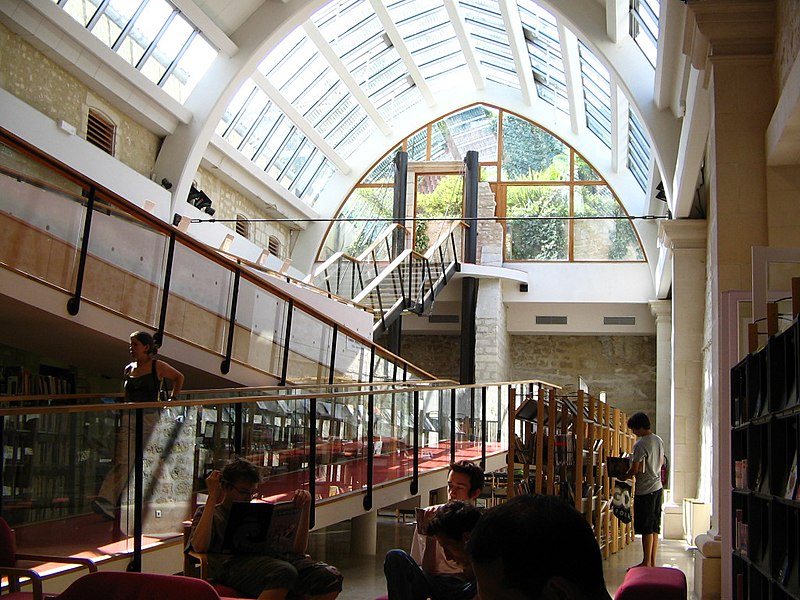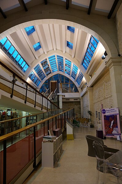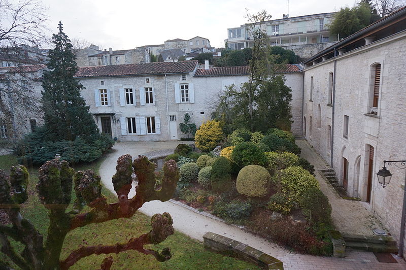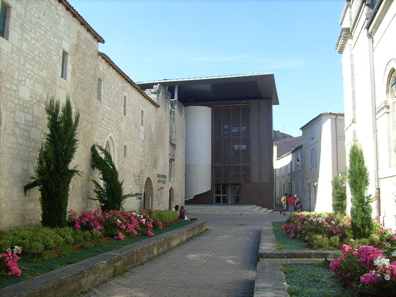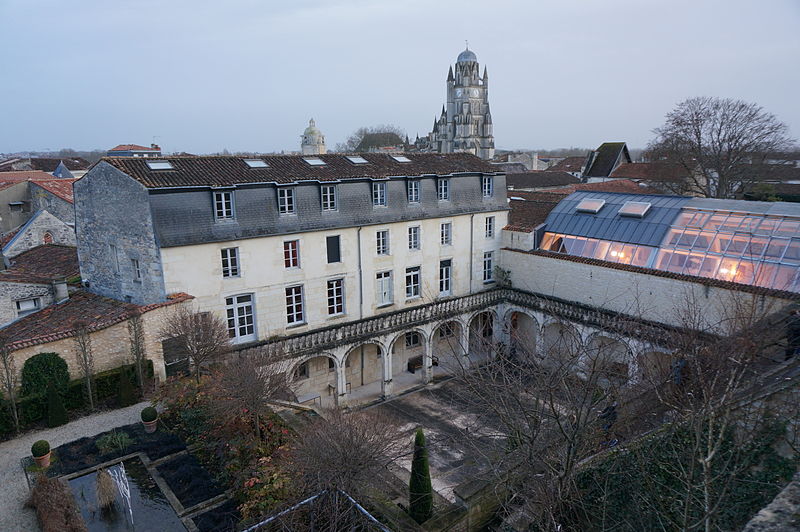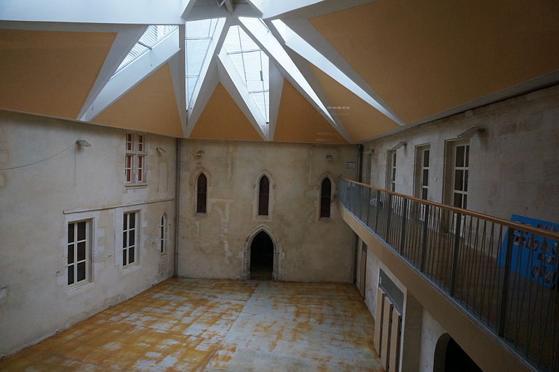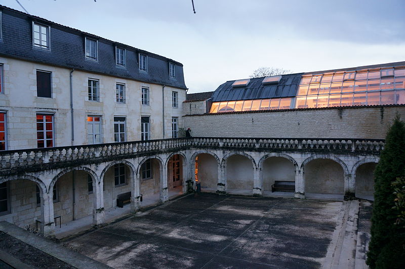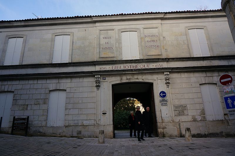 L'ancien couvent des Jacobins de Saintes, fondé au début du XIIIe siècle (vers 1292), accueillait une communauté de dominicains jusqu'à la Révolution. L'ensemble conventuel fut largement reconstruit au XVe siècle, époque à laquelle furent élevés l'église et la salle capitulaire, qui constituent les principaux vestiges médiévaux visibles aujourd'hui. De la chapelle du XVe ne subsiste que la partie orientale : la nef avait été démolie lors de l'aménagement de l'hôtel Martineau. Le chevet conserve une grande verrière à remplage flamboyant datée de 1446 et un portail latéral à fronton curviligne daté de 1762 ; l'élévation sud comporte également une baie gothique. Un état des lieux établi en 1723 montre que le couvent était alors en très mauvais état, occupé par une dizaine de religieux et disposant de revenus modestes. Expulsés pendant la période révolutionnaire, les frères dominicains virent leurs bâtiments vendus comme biens nationaux et transformés en demeures privées. Dans la seconde moitié du XIXe siècle, Maurice Martineau, négociant en cognac, bibliophile et amateur d'art, acquit progressivement l'ensemble du quadrilatère bâti — en 1883 puis en 1914 — et fit édifier un corps de logis moderne appelé hôtel Martineau. Inspiré par l'Art nouveau et par l'éclectisme de la fin du XIXe siècle, il fit appel à des maîtres verriers et faïenciers réputés : la demeure reçoit notamment des vitraux de Marcel Delon et des céramiques de Théodore Deck. Par son legs à la ville réalisé en 1928, Maurice Martineau transmit sa riche bibliothèque et les bâtiments de l'ancien couvent. Aménagé en bibliothèque municipale dès 1938, le site prit en 2001 le nom de médiathèque François-Mitterrand. La médiathèque occupe plusieurs salles de lecture, deux cloîtres, un déambulatoire et quatre jardins répartis sur trois niveaux ; une ancienne chapelle réaménagée en salle d'exposition est appelée chapelle de l'Étoile en raison du décor de son plafond. Une partie du bâtiment a été inscrite à l'inventaire supplémentaire des monuments historiques par arrêté du 1er octobre 1987 : le rez-de-chaussée de l'aile principale fermant la cour à l'ouest, le hall d'entrée avec son escalier, et le bâtiment en retour le long de la rue des Jacobins (extérieurs et décors intérieurs). La chapelle attenante à l'église fait l'objet d'une inscription au titre des monuments historiques depuis le 22 avril 2004. L'église de l'ancien couvent est classée au titre des monuments historiques depuis le 18 août 2005 ; elle conserve à l'intérieur une inscription en lettres gothiques comportant la date de 1446.