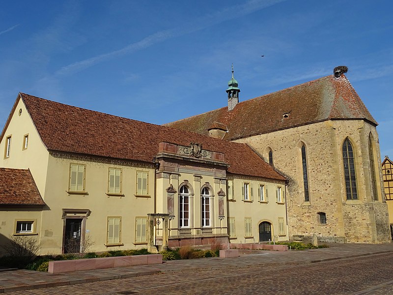 Le couvent des Récollets de Rouffach comprend l'église Sainte‑Catherine et les bâtiments conventuels organisés autour d’un jardin intérieur. Établi par des frères franciscains vers 1250, l’ensemble s’est développé à la fin du XIIIe siècle, l’église étant réalisée à cette époque. Au début du XIVe siècle furent édifiés les bâtiments conventuels et le cloître, grâce au frère Boldelin, inhumé à Rouffach en 1311. Une école fondée au sein de la communauté en 1444 acquit une réputation européenne à la fin du XVe et au début du XVIe siècle ; elle accueillit notamment des humanistes comme Jodocus Gallus, Conrad Pellican, Sebastian Münster, Conrad Lycosthenes, Valentin Boltz, Materne Berler et Johannes Siegrist. Des travaux de restauration menés à la fin du XVe siècle furent achevés vers 1510. Au XVIe siècle, l’ordre teutonique installé à proximité utilisa la travée ouest de la nef comme chapelle et lieu de sépulture, et le mur ouest fut avancé d’environ 2,50 m, vestige mis au jour lors des fouilles de 1982. Le couvent connut un fort dépeuplement dans la seconde moitié du XVIe siècle puis un repeuplement vers 1591 sous l’impulsion du comte Eberhard de Manderscheid‑Blankenheim, qui fit construire contre le mur nord du chœur une chapelle funéraire où il fut inhumé ; une clé de voûte et un campanile portent la date 1606. À l’entrée du chœur, un jubé en bois aurait remplacé un ancien jubé en grès. Au XVIIIe siècle l’intérieur fut transformé : stucs décorant colonnes, corniches et plafonds, obturation de certaines baies, construction d’un campanile et renouvellement du mobilier, notamment autels et chaire. Sécularisé et vendu en 1791, le couvent fut successivement utilisé comme caserne, hôpital militaire, prison et atelier de tissage; l’église devint chapelle annexe en 1813. Une aile fut détruite par un incendie en 1848 et la façade sur rue fut aménagée au XIXe siècle pour accueillir un tribunal cantonal, fonction qui prit fin au cours du XXe siècle. Aujourd’hui les bâtiments conventuels abritent les archives municipales et une salle d’exposition, tandis que l’église est fermée au public depuis plusieurs années ; des fouilles entreprises en 1982 ont été interrompues par manque de financement et une restauration n’est pas envisagée à court terme. Situé aux 9‑11, rue du Quatrième‑Régiment‑des‑Spahis‑Marocains et rue des Récollets, l’ensemble est classé au titre des Monuments historiques depuis 1921. L’église se compose essentiellement d’un chœur polygonal et d’une vaste nef rectangulaire de type basilical, sans transept ni massif occidental ; la toiture continue est surmontée d’un clocheton octogonal à bulbe. Le chœur mesure environ 23 m sur 8 m et la nef près de 35 m sur 16 m ; la nef centrale, plus élevée, est flanquée de deux collatéraux couverts en appentis et percée d’oculi dans sa partie haute. La façade ouest se ferme par un plan vertical percé d’une grande fenêtre et de baies plus petites ; la façade sud, donnant sur l’ancien cloître, est rythmée de hautes fenêtres, tandis que la façade nord, située dans un passage étroit, est renforcée par de puissants contreforts et comprend une chaire extérieure en pierre et l’entrée principale à portes doubles. La chapelle Manderscheid est adossée au côté nord du chœur. L’intérieur, aujourd’hui en chantier, présente une nef à deux rangées de colonnes cylindriques élancées soutenant des arcades ogivales sur six travées ; les collatéraux sont fermés par des plafonds de bois et l’arc triomphal marque l’accès au chœur. Le sol était couvert de dalles funéraires, aujourd’hui déplacées et entreposées dans la nef, et certaines inscriptions sont très effacées. Les baies sont pourvues de petits éléments de vitrage assemblés au plomb, qui diffusent une lumière crue. Le décor baroque du XVIIIe siècle, en grande partie blanc et stucqué, subsiste au chœur où le plafond porte un bas‑relief représentant Dieu le Père entouré d’angelots et une coquille au‑dessus du maître‑autel ; une partie du plâtre a été déposé pour des raisons de sécurité après des effondrements. Le maître‑autel, richement décoré, présente un grand tableau de Jean‑Benoît Reissmuller illustrant le martyre de Sainte‑Catherine, daté de 1710; plusieurs statues et autels latéraux, dont une Pietà et un Saint Sébastien, sont déposés au Musée du Bailliage de Rouffach. D’autres œuvres issues du couvent, comme une Déploration du XVIe siècle et des huiles sur bois, figurent dans des collections telles que le Musée Unterlinden de Colmar. Des fresques antérieures demeurent partiellement visibles dans des niches, notamment une Crucifixion (XVe‑XVIe siècle), des vestiges du Mont des Oliviers et une représentation du martyre de saint Jean Népomucène (XVIIIe siècle). Les bâtiments conventuels formaient trois ailes autour d’un cloître d’environ 30 m sur 24 m; l’aile est conserve un avant‑corps néo‑classique en grès, grandes fenêtres à balustrade et fronton à blason rappelant son usage judiciaire, l’aile ouest ayant été détruite en 1848 et ne subsistent que des arcs brisés géminés du cloître. Un cadran solaire peint, représentant le Monde selon une cosmologie géo‑héliocentrique, orne la façade entre deux fenêtres et a été restauré en 1979.