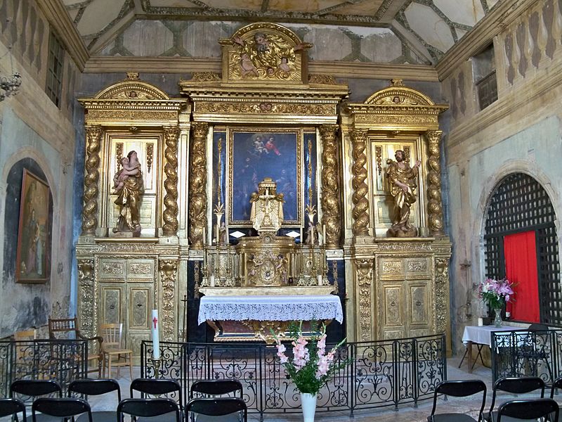 Le couvent des Ursulines de Bollène, dans le Vaucluse, est un ancien bâtiment conventuel qui a également servi d'hôpital local. Fondé au début du XVIIe siècle par les Ursulines de Valréas, il a vu ses religieuses chassées de la ville durant la Révolution française : en 1792 certaines d'entre elles furent guillotinées à Orange. En 1984, l'ensemble du couvent a été protégé au titre des monuments historiques ; la chapelle a été classée et le reste du bâtiment inscrit. La chapelle a conservé son retable d'origine, en bois sculpté et doré, ornée d'un tableau central représentant saint Roch et saint Jacques. Des ressources complémentaires sont disponibles sur Wikimedia Commons et dans la base Mérimée ; des fonds d'archives de 1792 sont conservés aux Archives nationales, et plusieurs portails traitent du catholicisme, de l'architecture chrétienne, du Vaucluse et des monuments historiques.