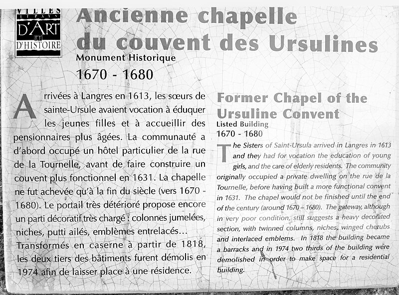 Façade de l'ancienne chapelle, dans une courette, rue de la Tournelle : classement par arrêté du 25 avril 1929 ; Partie de terrain comprise entre le portail et la rue de la Tournelle ainsi qu'une zone de deux mètres en arrière de ce portail : classement par arrêté du 24 octobre 1931