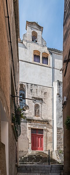 En 1356, l'ordre des Bénédictins fonde le monastère des Dames de Gorjan autour de l'église de l'ancienne paroisse Saint‑Étienne de Gorjan, devenue l'actuelle chapelle de l'hôpital. Entre 1560 et 1577, le couvent est détruit pendant les guerres de Religion. Après cette ruine, des bénédictines s'installent intra‑muros en 1580. Les bâtiments se développent du XVIIe au XIXe siècle vers le nord, en suivant le profil du terrain, la partie la plus élevée donnant sur la rue datant du XIXe siècle. Un escalier du XVIIe siècle donne accès aux deux rues et compense la forte dénivellation. Le couvent est reconstruit vers 1850 ; la chapelle est généralement datée de cette reconstruction, bien que la construction de la chapelle et de deux grands escaliers soit parfois attribuée au XVIIe siècle. La chapelle, de plan rectangulaire et à chevet plat, n'est pas orientée et occupe l'angle sud‑ouest de l'ensemble. L'accès se fait par un portail à pilastres et corniche, surmonté d'une niche et précédé d'un perron demi‑circulaire. Des contreforts flanquent la façade et contrebuttent la poussée des voûtes, dont les croisées d'ogives retombent sur des pilastres. Le couvent fait l'objet d'un agrandissement au XIXe siècle.