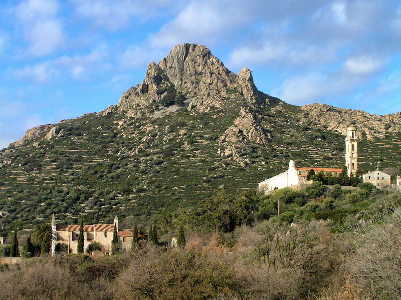 Le couvent Saint-Dominique de Corbara, ancien couvent Saint-François de la Pieve d'Aregno, a été fondé en 1456 ; certaines sources le situent toutefois vers 1430. Nationalisé à la Révolution, il fut vendu aux enchères puis acquis par Pascal et Louis Orticoni, qui mirent l'église à la disposition de la paroisse tandis que deux ailes du couvent tombaient en ruine. Au cours des années 1857-1864, les dominicains entreprirent la reconstruction des bâtiments avec l'architecte Bourard et quelques frères convers, remettant en état l'église et complétant les ailes conventuelles. Cette restauration permit l'installation d'une école en 1857, qui ferma en 1860, ainsi que d'un collège de philosophie et de théologie. Le couvent, important dans la province franciscaine de Corse et chargé traditionnellement de la formation des novices et des profès, a compté de neuf à quatorze religieux selon les périodes. Après la loi de séparation de 1905, il resta inoccupé jusqu'en 1914 puis fut transformé pendant la Première Guerre mondiale en centre d'internement pour civils allemands et austro-hongrois ; certains détenus laissèrent des décors peints dans des cellules et figurent parmi des artistes et artisans tels que Léo Wenger, Rodolphe Popper, Edouard Paschke ou Frédéric Kolbel. Mis en bail emphytéotique à partir de 1927, le site connut plusieurs cessions et remises en état, notamment lorsque le bail fut repris en 1961 par le Ritiro de Corbara, puis en 1993 par l'association diocésaine qui favorisa l'installation des Frères de Saint-Jean, présents depuis cette date pour veiller à l'entretien. L'ensemble du couvent, bâtiments conventuels, cloître, église et clocher, est inscrit à l'inventaire national des monuments historiques par arrêté du 28 novembre 2011. Architectoniquement, l'ensemble est formé de quatre ailes disposées autour d'un jardin de cloître rectangulaire, s'ouvrant sur celui-ci par des arcs en plein cintre. L'église, adossée à l'aile sud, se compose d'une nef à vaisseau central bordée de chapelles latérales voûtées en berceau avec lunettes ; le chœur comporte une travée droite prolongée par une abside en cul-de-four. La tour-clocher est coiffée d'un lanternon couronné par un dôme. Les bâtiments conventuels comprennent deux niveaux sur rez-de-chaussée, au-dessus d'un étage de soubassement abritant caves et pressoir. Au fil des siècles, le couvent a accueilli des religieux et des visiteurs illustres, parmi lesquels Guillaume Savelli, François-Antoine Mariani, Pascal Paoli, Guy de Maupassant, le père Didon et le cardinal Roncalli, futur pape Jean XXIII.