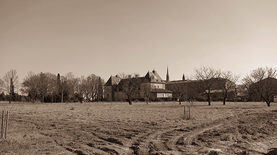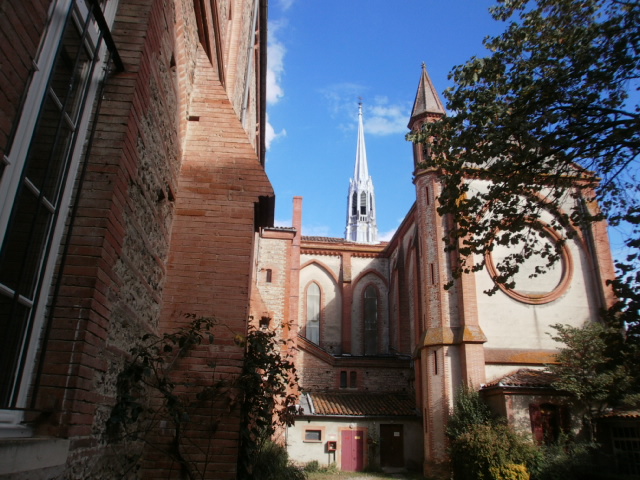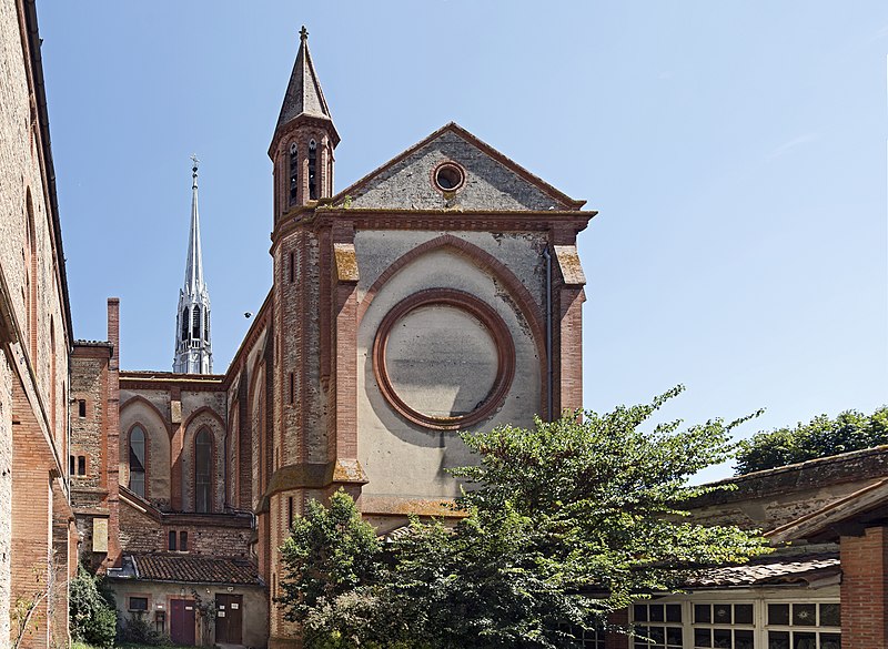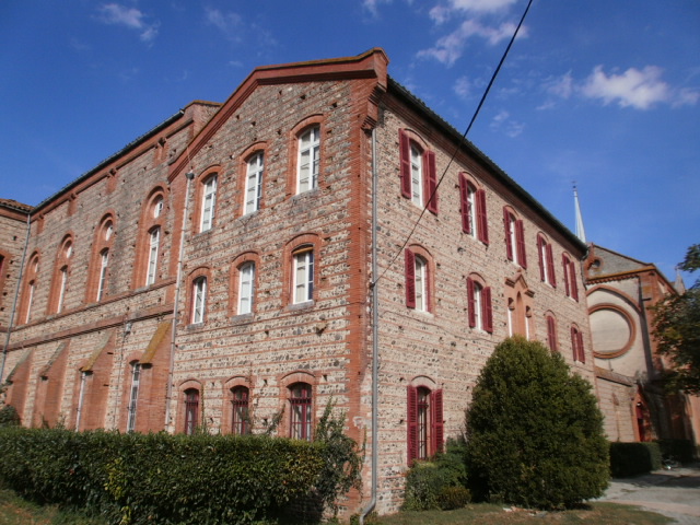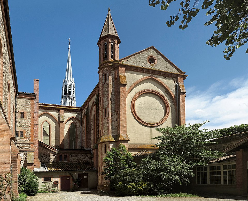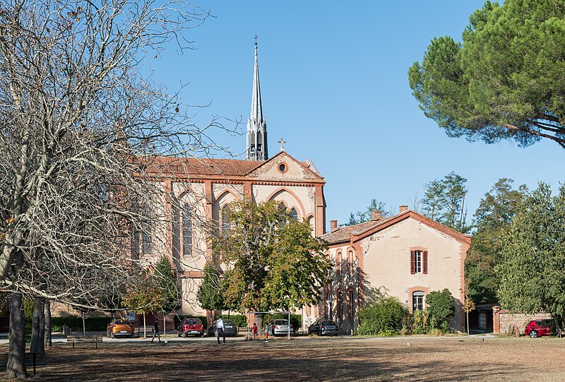 Le couvent Sainte‑Catherine de Sienne, également connu sous le nom de monastère Notre‑Dame‑des‑Sept‑Douleurs et Sainte‑Catherine‑de‑Sienne, est une maison religieuse située à Blagnac, dans la banlieue de Toulouse. Il s’est développé au XIXe siècle autour d’un château bâti au XVIIe siècle par Jean d’Aldeguier, acquis ensuite par plusieurs familles, vendu en 1748 à Gaspard de Maniban qui entreprit d’importants aménagements, puis acheté en 1810 par le général Jean Dominique Compans. En 1852, le domaine fut acquis par des Trappistines venues de l’abbaye de Maubec ; elles firent édifier l’église et des bâtiments conventuels selon les plans d’Henry Bach entre 1860 et 1880, l’église ayant été consacrée le 18 août 1862. Les constructions conventuelles entre l’église et le château, engagées en 1862, ne furent jamais entièrement achevées. Tout au long du XIXe siècle, les religieuses assurèrent des activités sociales et éducatives sur le site, ouvrant des écoles et accueillant des blessés lors du conflit de 1870. Durant la Première Guerre mondiale, la salle capitulaire servit d’« hôpital temporaire n°3 bis », d’abord pour des blessés, puis pour des malades annamites. Les Trappistines quittèrent la propriété en 1938 en raison de l’urbanisation croissante ; une communauté de Dominicaines les remplaça à partir de 1939. Pendant la Seconde Guerre mondiale, l’hôtellerie fut réquisitionnée le 19 juillet 1943 par environ deux cents soldats allemands de la Luftwaffe jusqu’au 18 août 1944, puis occupée par les F.F.I. jusqu’à l’automne 1945, ce qui provoqua des dégâts, notamment aux vitres et aux vitraux. Après la guerre, des travaux de restauration furent entrepris et, en 1946, les moniales commandèrent au peintre verrier Louis Mazetier un ensemble de vitraux, de fresques et de mobilier d’église ; il réalisa notamment dix‑neuf verrières en grisaille, deux grands vitraux colorés évoquant les Mystères du Rosaire et un décor peint — frise du Chemin de Croix autour de la nef et panneau de la Geste dominicaine dans le chœur — réalisé entre octobre 1946 et novembre 1951. À partir des années 1950, la communauté diversifia ses activités pour assurer sa subsistance (reliure, moulage de statues, tricotage, fabrication de pâtes), et une pension de famille fut transformée en maison de retraite. Depuis 1987, les Dominicaines partagent le site avec la Communauté des Béatitudes. Le monastère comprend un imposant bâtiment conventuel, l’église néo‑gothique en forme de L du XIXe siècle, le château du XVIIe siècle et des dépendances des XVIIe et XIXe siècles. L’église, ses peintures murales du chœur et de la nef ainsi que l’ensemble des vitraux sont inscrits à l’inventaire des monuments historiques depuis le 30 avril 2001.