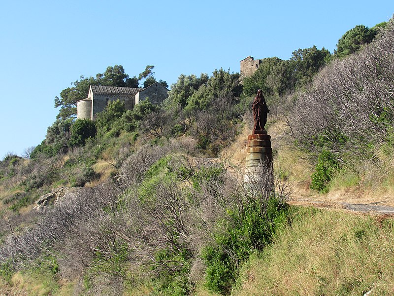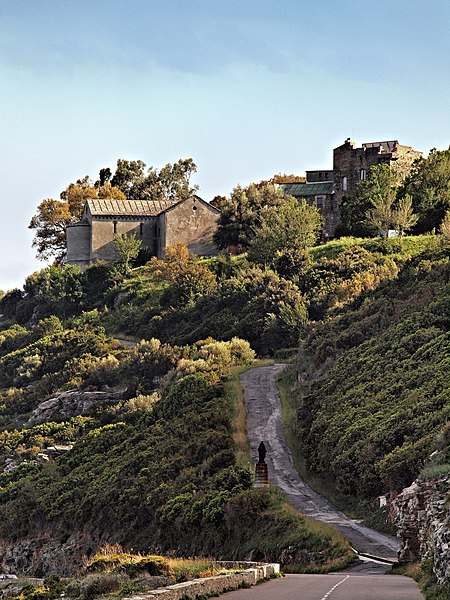 Le site de l'ancien couvent Sainte-Catherine était à l'origine occupé par un oratoire dont les soubassements pourraient remonter au XIIe siècle. Au XIIIe siècle, des reliques provenant de Terre Sainte y furent déposées et y restèrent jusqu'en 1443, date du début des travaux d'un nouveau sanctuaire jouxtant la chapelle primitive devenue trop petite. En 1355, des marins en perdition déposèrent une caisse remplie de reliques, ayant fait le vœu de les offrir à la première église où ils aborderaient. Face à l'afflux croissant de pèlerins, les habitants élevèrent une église plus vaste, attenante à l'oratoire. Sous le chœur fut aménagée une chapelle souterraine en demi-cercle, accessible par des escaliers partant d'ouvertures pratiquées dans le dallage ; l'autel contenait les reliques. L'église, de style pisan, fut consacrée en 1469 ; son abside est entourée d'une arcature en pierre en plein cintre. Au XVIe siècle, une tour fut construite pour loger les prêtres desservant l'église et veillant sur les reliques ; cette tour abritait aussi les gardes chargés de protéger la chapelle contre les incursions mauresques. À l'origine se trouvait sur le site une petite chapelle, vraisemblablement dédiée à saint Nicolas. Pour plus de sûreté, les reliques conservées à Sainte-Catherine furent ensuite transférées dans l'église paroissiale Saint-Martin, située à l'intérieur des terres et moins exposée aux incursions barbaresques. À la fin du XVIe siècle, l'église fut confiée aux Augustins, qui l'occupèrent jusqu'en 1674 ; après une brève installation des Servites de Marie de 1674 à 1677, les Augustins reprirent le couvent jusqu'en 1702. À partir de cette date, les Servites réintégrèrent les lieux et y demeurèrent jusqu'à leur expulsion en 1792, peu après la Révolution. La chapelle originelle de saint Nicolas, alors en grande partie ruinée, a été restaurée dans les années 1950. Les anciens bâtiments conventuels sont aujourd'hui privés et transformés en habitation, tandis que l'ancienne église conventuelle appartient à la commune. À proximité se trouvait un petit bâtiment de fondation ancienne, peut‑être médiévale, servant d'hôpital ; il n'en reste aujourd'hui aucune trace.