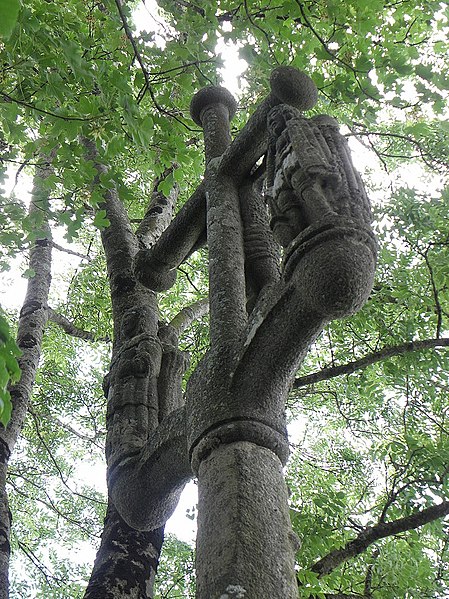 Édification du calvaire à la suite d'un vœu collectif pendant une épidémie de peste.