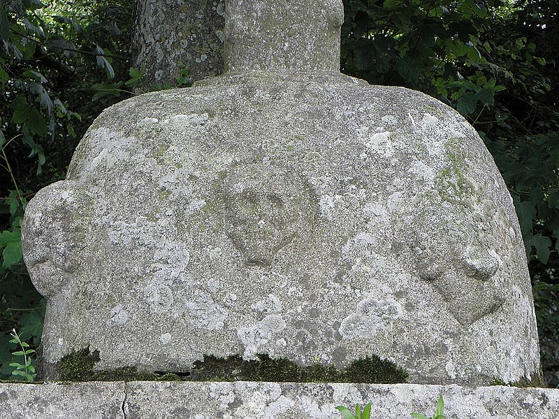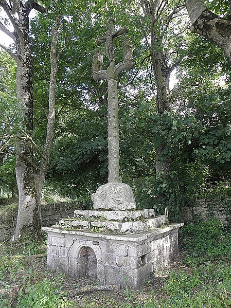 Érigé en 1626 à la suite d'un vœu collectif pendant une épidémie de peste, ce calvaire a fait l'objet, en 1903, d'une restauration du soubassement et, probablement, de la construction de l'enclos. Il se distingue par des particularités de structure et d'iconographie. Le socle hémisphérique et son décor constituent un exemple unique dans le Finistère. Si la tête de mort figure parfois sur des calvaires, le motif du crâne entouré de deux personnages — un homme et une femme tournés vers le crâne — est un unicum. Plusieurs statues ornent l'édifice, notamment la Vierge, un chevalier en costume civil du XVIIe siècle, Saint-Yves et Saint-Jean. La croix porte la représentation du Christ.
