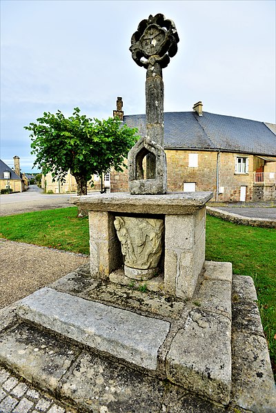 La croix de Saint‑Yrieix‑le‑Déjalat est une croix monumentale en granit, datée des XVe et XVIe siècles, située sur la place de l'église à Saint‑Yrieix‑le‑Déjalat (Corrèze, Nouvelle‑Aquitaine). Elle repose sur un socle rectangulaire dont la base est supportée par un escalier à trois marches qui n'entoure pas la face antérieure du socle. La partie supérieure adopte la forme d'un médaillon losangé, bordé de festons circulaires, et porte en léger relief un Christ en croix entouré, à ses pieds, des saintes femmes. En façade, une niche pratiquée dans le socle accueille un chapiteau, probablement provenant de l'église, figurant un Christ assis : une main sur la poitrine, l'autre posée sur le genou. Derrière lui, à sa droite, se tient un personnage tenant un encensoir. À droite du chapiteau figure, de manière assez fruste, un animal dont on distingue seulement une patte terminée par un pied griffu et une aile, au milieu de laquelle apparaît une demi‑sphère ; une inscription est gravée entre le Christ et cette aile. La croix est inscrite au titre des monuments historiques par arrêté du 26 janvier 1927. Des photographies présentent la croix sur la place de l'église, le chapiteau dans sa niche et des détails de celui‑ci.