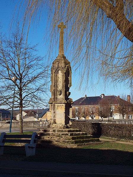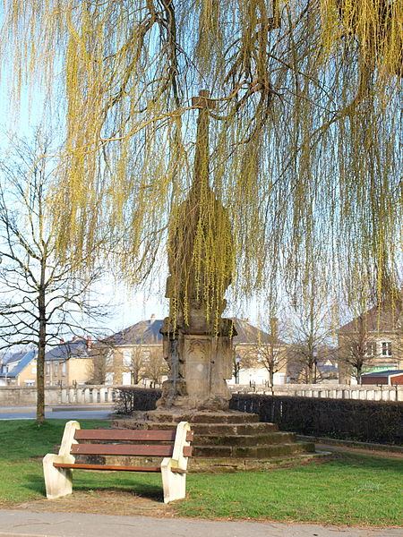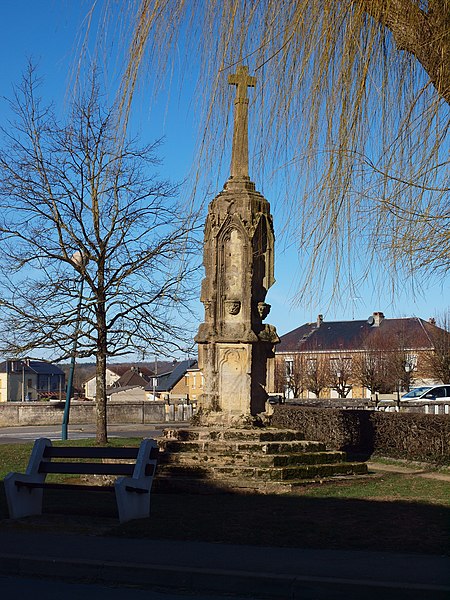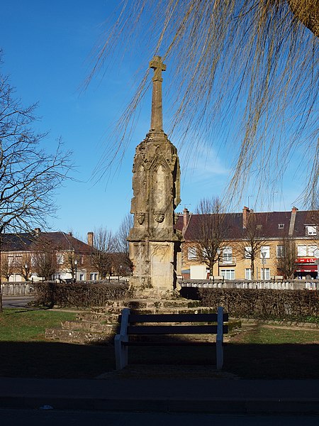 La croix de carrefour du Chesne est une croix de pierre érigée sur la place centrale du Chesne, dans le département des Ardennes, à proximité de l'église et du canal, à l'intersection de la Grand'Rue, de la rue du Lac-de-Bairon et des routes menant à Louvergny, Tannay et Vouziers. Elle a probablement servi de croix de carrefour, de mont-joie et de repère de chemin où l'on s'arrêtait pour prier, et certains auteurs la situent sur un itinéraire de Compostelle pour les pèlerins du nord. Ce type de monument était autrefois répandu sur les chemins de France, mais il n'en subsisterait aujourd'hui que six ou sept exemplaires sur le territoire national. L'édicule repose sur une base hexagonale ornée d'une ogive sur chacun de ses pans, surmontée d'un fût à six faces creusées d'ogives avec frontons qui abritaient autrefois des statues aujourd'hui disparues. On ne connaît le sujet que d'une seule de ces statues, celle de Saint-Jacques, patron du pays et de l'église paroissiale. Au sommet se dresse une croix de pierre plus récente, qui a remplacé une colonne ornée de figures du Christ et de la Vierge ; l'ensemble mesure environ quatre mètres de hauteur. Le monument reposait initialement sur huit marches, mais au début du XIXe siècle seules deux marches étaient encore visibles. Le creusement du canal des Ardennes a ensuite enfoncé la croix et enterré les degrés, si bien qu'elle se retrouvait à ras du sol, avant que la place ne soit réaménagée et que l'essentiel des marches ne réapparaisse. Les parties hautes, c'est‑à‑dire la croix proprement dite, datent du Premier Empire et ont remplacé une partie abattue pendant la Révolution française, tandis que les étages inférieurs remontent aux XVe ou XVIe siècles. Une date, 1588, est mentionnée dans les sources sans précision quant à savoir s'il s'agit de la fondation ou d'une restauration. La croix a été ébréchée pendant la Première Guerre mondiale et sa partie supérieure a été refaite. Lors du bombardement de 1940 qui dévasta Le Chesne pendant la Seconde Guerre mondiale, la commune fut en grande partie détruite, mais la croix demeura debout au milieu des décombres. L'édifice a été classé au titre des monuments historiques en 1922.
