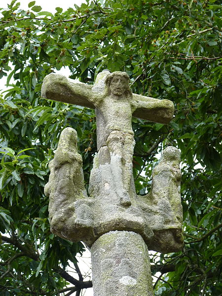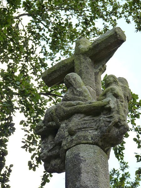 Calvaire datant du XVIIe siècle, la croix de chemin est une croix monumentale placée au bord d'un chemin ou d'une route. Ces croix se sont développées depuis le Moyen Âge et se sont multipliées à partir de 1095, lorsque le droit d'asile leur a été étendu, leur conférant un double rôle de guide et de protection. De formes, de tailles et de matières variées — bois, granite, fonte, fer forgé ou ciment — elles agrémentent bourgs, hameaux, villes et voies de communication et symbolisent la foi de la communauté. Certaines sont l'œuvre de la volonté publique des paroisses, d'autres résultent d'initiatives privées, souvent d'une famille qui souhaitait marquer sa piété, protéger les siens ou rendre un hommage. Les croix de carrefour guident le voyageur, servent d'étapes lors de processions ou de rogations et, sur la voie des morts, ponctuent parfois le trajet funéraire pour la récitation de prières. Certaines croix ont vocation de pèlerinage, comme la croix des Rameaux qui recevait une procession importante et la bénédiction du buis, et d'autres ont été érigées en ex-voto, en mémoire d'un événement heureux ou tragique. D'autres encore rappellent des épidémies ("croix de peste"), marquent un itinéraire de pèlerinage ou délimitent juridiquement ou spirituellement l'entrée et la sortie des villages. Les croix couvertes, composées d'une croix abritée par un portique de bois ou de pierre, sont relativement rares et se rencontrent surtout en Provence; beaucoup datent des XIVe et XVe siècles. Aux croix en bois, que l'on remplaçait pieusement tous les vingt ans environ, ont succédé des croix en pierre réalisées par les tailleurs de pierre locaux grâce aux libéralités de propriétaires aisés, assurant une plus grande longévité. Lors de leur érection, les croix étaient généralement bénies et faisaient l'objet de pratiques cultuelles : processions, arrêts lors des missions paroissiales ou gestes plus humbles comme l'accrochage d'un rameau de genêt ou le dépôt d'un bouquet. Si certaines traditions se sont estompées, de nombreuses croix restent encore fleuries et font l'objet d'un entretien local soutenu par les habitants des hameaux. Sur les alpages et les sommets, des "croix alpestres" ont été érigées ; près de 70 d'entre elles ont été répertoriées sur les sommets fribourgeois. Vers le milieu du XXe siècle, des croix dites de Mission ont été portées en montagne, puis, avec le développement de l'alpinisme, d'autres croix sont apparues dans les Alpes et les Préalpes, parfois en hommage à des alpinistes disparus. Chaque croix de montagne bénéficie souvent de la protection d'un "gardien" qui organise réparations et le maintien du carnet de la croix, placé dans une boîte où figurent relevés météorologiques, notes poétiques et confidences des visiteurs. Ces croix sommitales s'inscrivent dans le même paysage religieux que les chemins de croix, chapelles et oratoires; les messes et offices en plein air contribuent à leur popularité et offrent une manière conviviale et proche de la nature de vivre la foi.