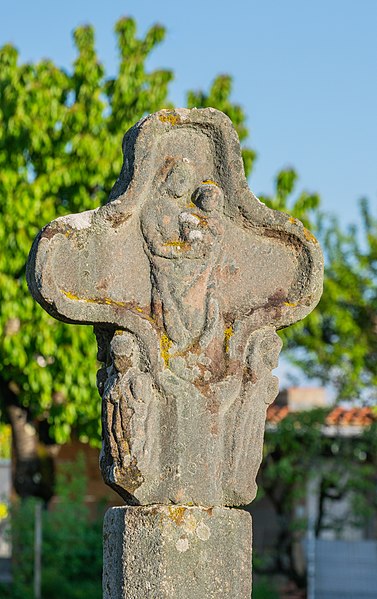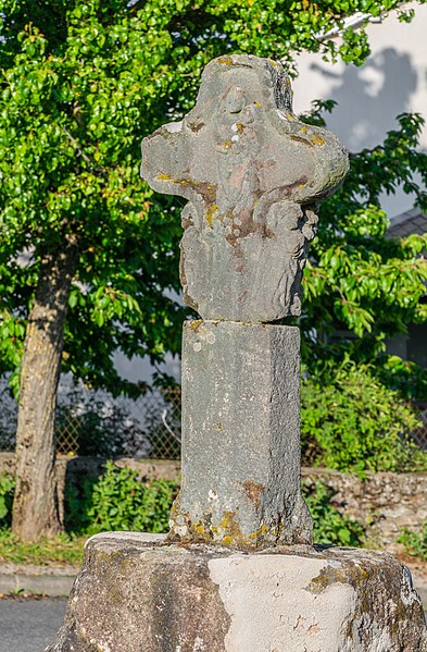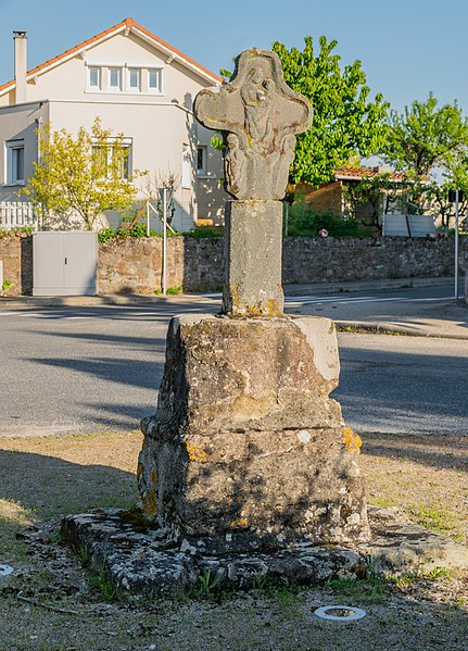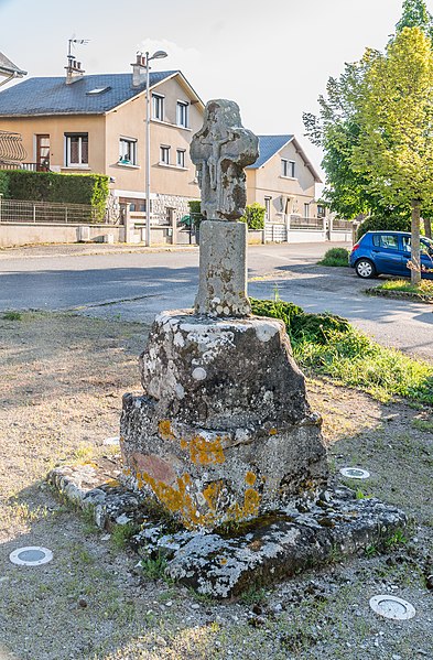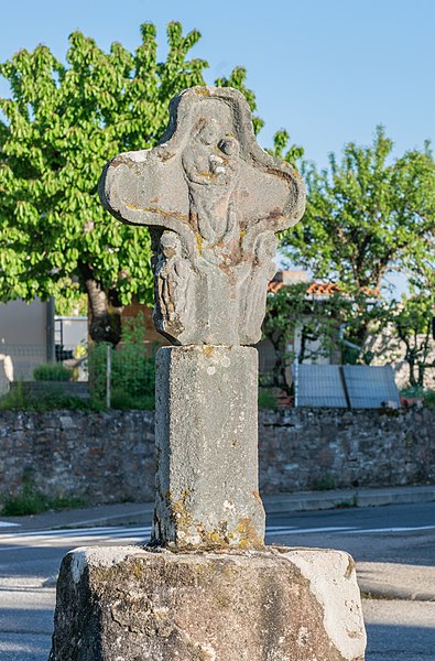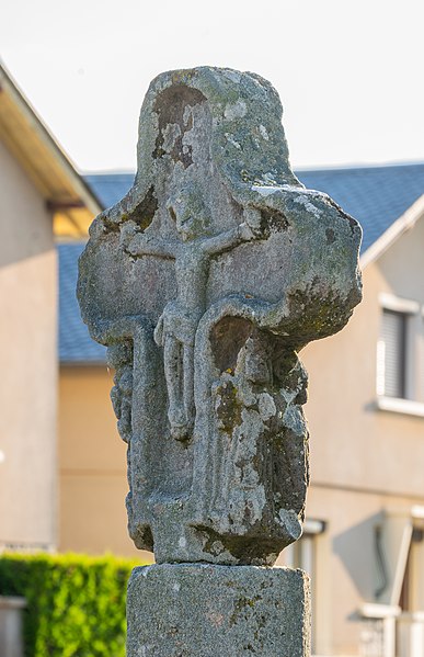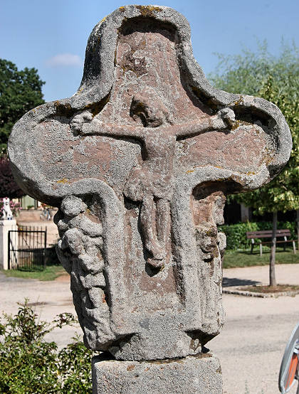 Croix de chemin en grès rose du XVe siècle, à l'entrée du village, côté Sud : classement par arrêté du 12 décembre 1910