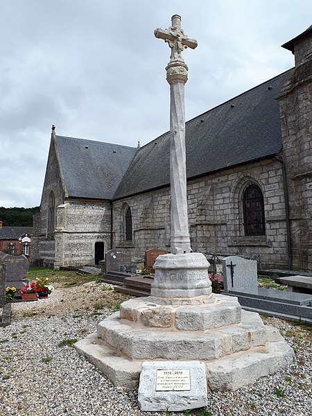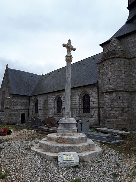 La croix de cimetière d'Imbleville se trouve dans le cimetière du village, en Normandie. Érigée en grès en 1510, elle résulte du don du seigneur du lieu, Philippe de Dampierre. Le socle octogonal porte une dédicace et un écusson aux armoiries de la famille du donateur. Le fût torsadé, en grès, présente un petit décor de coquilles et est datable des années 1540-1550. La croix sommitale, en calcaire, est sculptée d'un Christ sur une face et de la Vierge sur l'autre, tandis qu'un nœud orné de faces d'angelots complète le calvaire. L'édifice a fait l'objet d'une restauration au milieu des années 1870 et il est inscrit au titre des monuments historiques depuis le 21 novembre 2006.