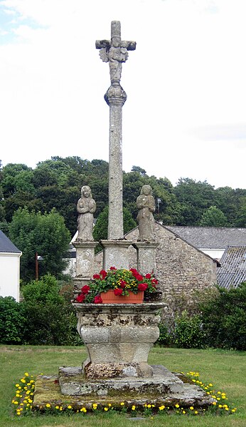 Le calvaire du cimetière de Lanvaudan se situe place de l'église, au bourg de Lanvaudan (Morbihan), au sud de l'église dans l'enclos paroissial. Il correspond à la croix de l'ancien cimetière de l'église paroissiale. Daté de 1647, il appartient au XVIIe siècle. Il repose sur un large soubassement évasé qui supporte trois socles. Le socle central porte un grand fût en pierre, noueux, surmonté du Christ en croix placé devant un rayonnement ; les extrémités des bras de la croix sont terminées par des couronnes royales. Les deux socles latéraux accueillent, de part et d'autre, une statue de la Vierge et une statue de saint Jean. La croix est contemporaine de l'église. Le calvaire est inscrit au titre des monuments historiques depuis le 20 mars 1934.