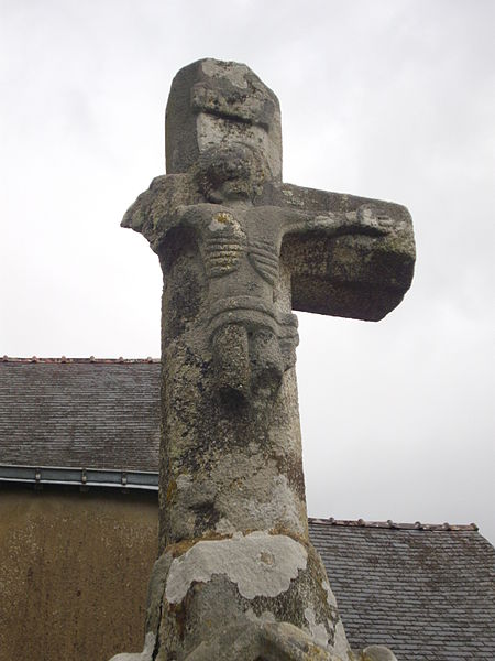 La croix de cimetière de Larré, dite Croix des Douze Apôtres, se trouve place de l'église à Larré (Morbihan), au sud‑est de l'église, sur l'emplacement de l'ancien cimetière. Datée du XIVe siècle et réédifiée en 1866, elle est inscrite au titre des monuments historiques depuis le 5 octobre 1926. La base carrée est ornée de scènes sculptées : la face ouest représente trois personnages dont saint Laurent, la face nord la salutation angélique, la face sud deux personnages et la face est trois personnages dont sainte Catherine. Le pied de la croix montre quatre figures — un évêque (saint Aignan), saint Michel, saint Adrien et saint Jean‑Baptiste tenant le signe de l'Agneau — surmontées d'un petit fronton. Le fût, à section octogonale, porte un Christ surmonté de l'inscription INRI. Le socle comporte une frise et présente un riche détail sculptural sur l'un des personnages au pied de la croix.