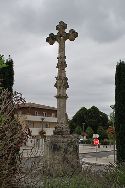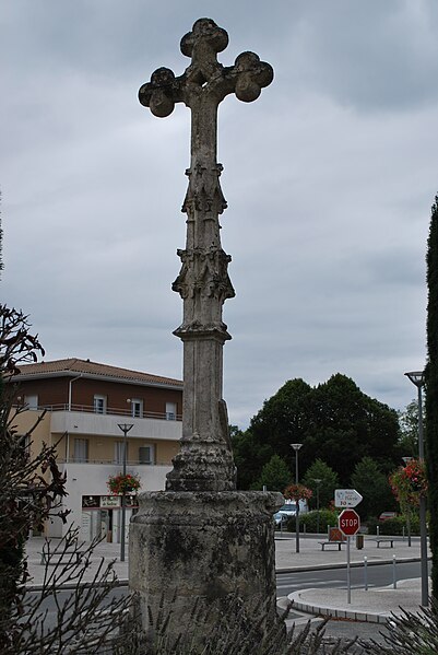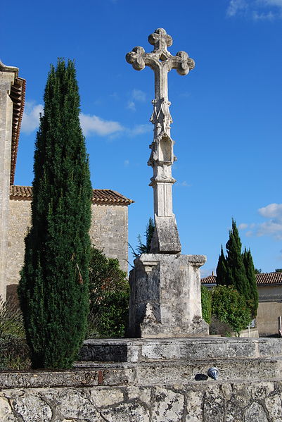 La croix de cimetière de Sadirac, située près de l'église Saint-Martin dans la Gironde, est une croix hosannière. Les croix de cimetière apparaissent à partir du XVe siècle ; lorsqu'elles occupent le centre d'un cimetière, on les qualifie de croix hosannières, car la prière « Hosanna » y était chantée lors de la bénédiction des rameaux. Ces monuments, souvent élevés par des maîtres maçons plutôt que par des sculpteurs, résultent fréquemment de dons de seigneurs et servent à mettre en valeur le saint patron de la paroisse, généralement représenté sur un côté de la croix sommitale. Le fût de la croix de Sadirac est carré et flanqué de pilastres ornés de crochets et d'arcs en doucine ; il est couronné de pinacles qui s'amortissent pour laisser la croix dominer l'ensemble. La croix repose sur un socle posé sur un emmarchement. Sous une accolade subquinquilobée, orientée à l'ouest, s'ouvre une petite niche aujourd'hui vide ; directement au-dessous, un pupitre en pierre est appuyé contre le socle. Le socle est carré en haut et en bas, mais épannelé en son milieu où il prend une forme octogonale, les angles du carré étant réunis à la portion épannelée par des demi-pyramides. La hauteur totale de la croix est de 4,70 mètres. Cette description est donnée par Léo Drouyn. La croix fait l'objet d'un classement au titre des monuments historiques depuis le 20 décembre 1907. Une photographie signée Brutails illustre l'édifice.