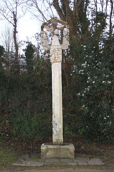La croix de Saint‑Fiacre se dresse quai Neuf, au nord du quartier de Saint‑Goustan, sur la rive gauche du Loc'h à Auray (Morbihan). Datée du XVIe siècle, elle est inscrite au titre des monuments historiques par arrêté du 29 mars 1935. Elle repose sur un dé en granit avec emmarchement, puis sur un grand fût octogonal fiché dans un socle de granite. Le tailloir porte de petits sujets sculptés figurant des scènes, et la croix elle‑même présente, sur l'avers, la Crucifixion et, sur le revers, une Pietà. Elle est sans doute liée à la chapelle Saint‑Fiacre, attestée au XVIe siècle et mentionnée au XVIIIe siècle sous le nom de chapelle de Keralbaud, alors en ruine.