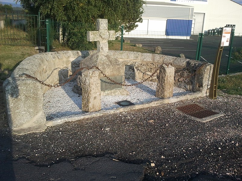 Fragment de motif sculpté de style gothique flamboyant, cette pièce en pierre ne semble pas avoir été conçue comme une croix de chemin. Des traces montrent qu'elle a été détachée d'un autre élément, notamment l'amorce d'un arc partant de l'intersection des bras. La croix se termine par un motif fleuronné et porte un Christ en haut-relief dont la tête est manquante. Ce motif pourrait avoir constitué la partie centrale d'un tympan. Appelée Croix des Anglais, la pièce est située à Saint-Chély-d'Apcher, en Lozère. L'édifice en pierre remonte au XIVe siècle et a été inscrit au titre des monuments historiques en 1926. Des images et une notice sont consultables sur Wikimedia Commons, et la croix figure dans la liste des monuments historiques de la Lozère.