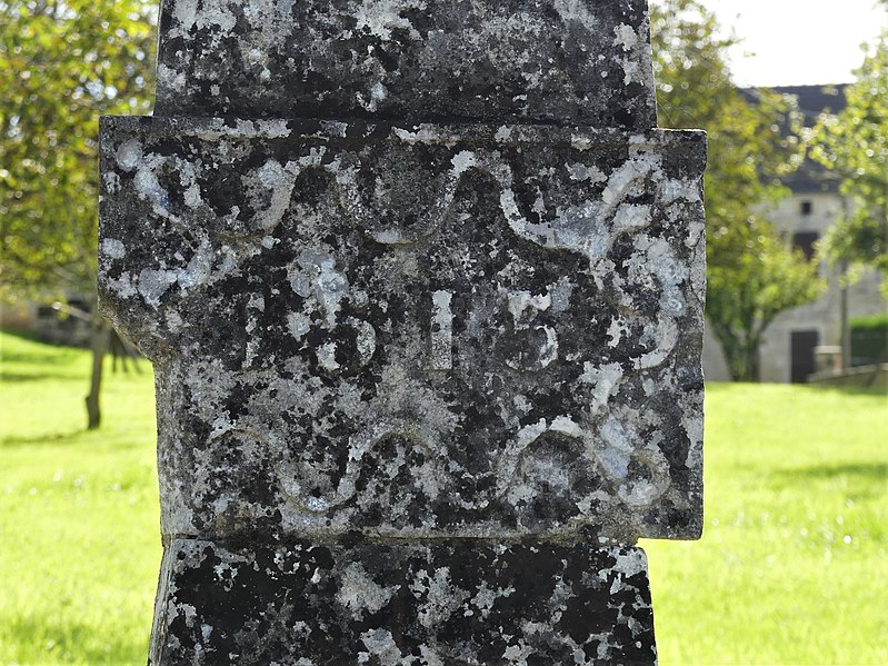 La croix dite de la Faurie repose sur un socle carré orné d'une grecque et de motifs feuillagés. Dans la partie basse figure une colombe. Au-dessus du cartouche portant la date, une flèche à hampe barbelée transperce un cœur surmonté d'un médaillon rond gravé des lettres INRI. Les bras et le haut de la croix sont eux aussi décorés de feuillages.