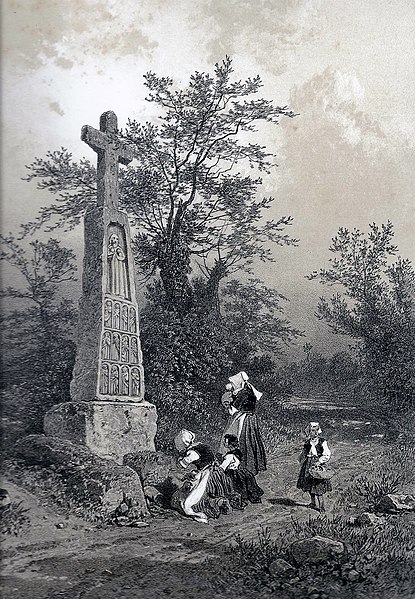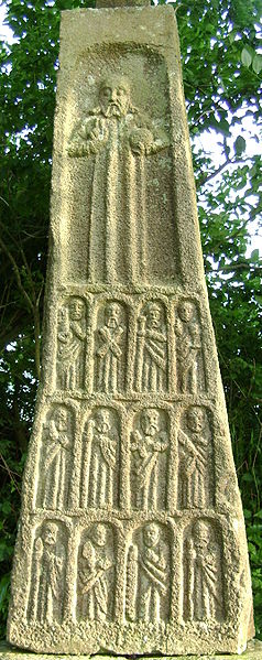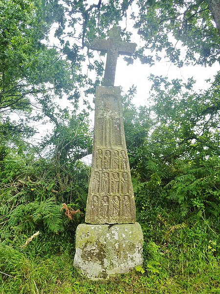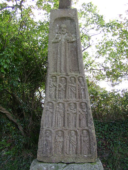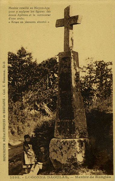 La croix dite des Douze Apôtres est située sur la commune de Logonna-Daoulas, près du hameau de Rungléo, le long de l'ancien chemin vicinal reliant Logonna-Daoulas à L'Hôpital-Camfrout, dans le Finistère (Bretagne). Elle se compose d'un monolithe trapézoïdal à quatre faces, haut de 2,20 m, surmonté d'une croix de section quadrangulaire et reposant sur un bloc arrondi de granite formant socle. L'élément principal correspond probablement au remploi d'un ancien monolithe — menhir, stèle de l'âge du Fer ou borne milliaire — retaillé et christianisé. La face antérieure porte des bas-reliefs représentant les douze Apôtres disposés dans des niches, dominés par un Christ bénissant tenant un globe dans la main gauche. Selon Castel, la liste et le positionnement des apôtres renvoient au canon romain du rite tridentin défini par le pape Pie V en 1570, ce qui suggère une mise en œuvre de la croix dans le dernier quart du XVIe siècle. Cette iconographie présente également des parentés avec celle de plusieurs hautes-croix irlandaises des IXe et Xe siècles. Bien que les menhirs et stèles christianisés soient fréquents en Bretagne, aucune croix comparable n'a été identifiée dans la région. La croix est inscrite au titre des monuments historiques par arrêté du 27 juillet 2015.