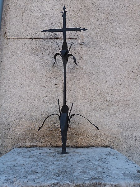 La croix de Bournazel est une croix chrétienne en fer forgé, implantée sur un socle de pierre à Bournazel (Tarn, Occitanie). Datée du XVIe siècle, sa hampe sort d’un bouquet de feuilles en tôle effilée, motif repris à mi‑hauteur. La hampe se termine par une fleur de lys et le croisillon présente une forme de pointe de lance. La croix est classée au titre des monuments historiques par arrêté du 15 juin 1959. Pour aller plus loin, on peut consulter l’article sur la commune de Bournazel, la liste des Monuments historiques du Tarn et les ressources telles que la base Mérimée ainsi que les portails consacrés à l’histoire, au Tarn et aux monuments historiques français.