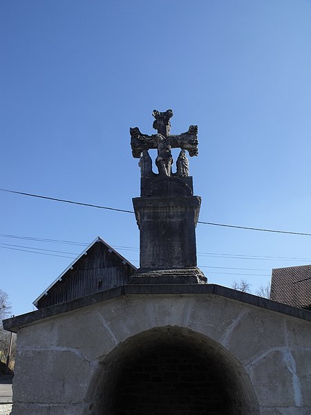 La Croix du bas du village, à Germéfontaine (Doubs), est une croix de chemin du XVIe siècle située au centre du village, à l'intersection de la route départementale 20, de la rue du Frêne et de la rue du Prince‑Albert. Inscrite au titre des monuments historiques en 1990, elle a été classée le 31 août 1992. La croix surmonte une niche et se trouve à proximité d'une fontaine‑lavoir.