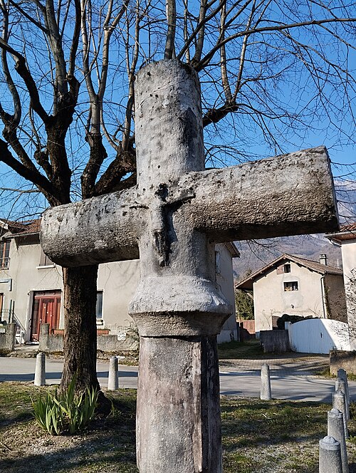 La croix du Genevrey, ou croix du cimetière de Genevrey (ou Genevray), est une croix catholique en pierre située dans le hameau du Genevrey à Vif, dans l'Isère. Elle se dresse sur le terrain de l'ancien cimetière du hameau, juste devant le porche d'entrée de l'église Sainte-Marie du Genevrey, et est visible depuis la rue de l'Église. Érigée au XVe siècle, elle constitue la seule véritable trace de ce cimetière qui entourait encore l'église jusqu'au XIXe siècle. Une autre trace survivante est une vieille pierre tombale d'époque médiévale encastrée contre le mur extérieur sud du porche. La croix est classée monument historique depuis le 11 février 1911. On peut observer des détails visibles à l'avant et à l'arrière de la croix ainsi que son implantation par rapport au porche.