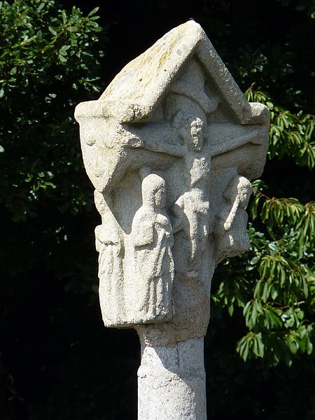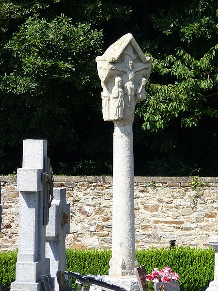 Le motif se compose, sous une forme pointue, d'un Christ accompagné ; de l'autre côté figure une Vierge à l'Enfant, également accompagnée. Le fût, de section circulaire, repose sur une base aux angles abattus.