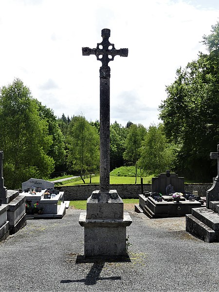 La croix repose sur un socle cubique, surmonté d'une table carrée aux bords saillants et chanfreinés. Sur cette table s'élève un socle cubique dont la partie supérieure prend la forme d'un tronc de pyramide. Sur la plateforme terminale de ce socle est posée la base carrée du fût, qui devient circulaire pour former le fût lui‑même. Un nœud sépare le fût de la croix ; à la base de ce nœud saillit une baguette torique et, au‑dessus, s'étend un décor de feuilles frisées et retournées. Les bras et le montant se terminent par des extrémités cylindriques, renflées au‑dessus d'un tore ; deux de ces cylindres portent un décor végétal. Autour du centre, des redents unissent les bras et le montant en formant un nimbe sensiblement carré, ajouré de quatre lobes. Sur une face figure le Christ crucifié ; sur la face opposée, la Vierge tenant l'Enfant est représentée debout sur une console prismatique, la tête abritée sous un gâble décoré d'un trèfle.