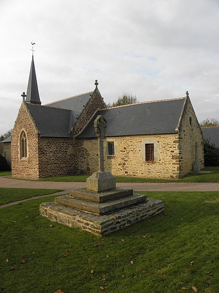 La croix en granit de Clayes, ancienne croix de cimetière, se dresse devant l’église du village d'Ille‑et‑Vilaine, en Bretagne. Datée du XVe siècle, elle est classée au titre des Monuments historiques depuis le 10 mars 1907. L'élément repose sur trois marches et un socle qui passe d'une base carrée à une section octogonale. La croix porte des sculptures figurées : sur le bras ouest se trouve une Vierge à l'Enfant encadrée de deux personnages, peut‑être des anges ; sur le côté est est représenté le Christ en croix accompagné de deux personnes, identifiées dans certaines lectures comme saint Jean et la Vierge ou décrites comme deux femmes à ses pieds. La base de la croix porte la date d'une possible réfection, l'inscription étant difficile à lire (1770 ou 1779).
