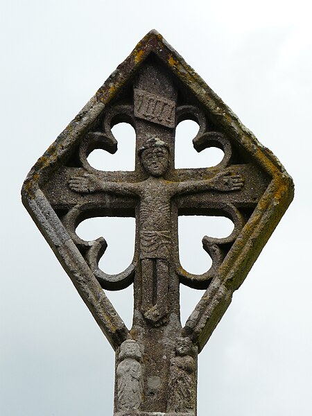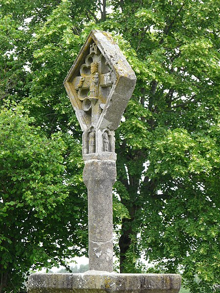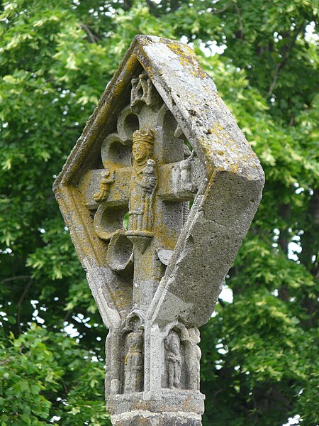 La croix de Labessette est une croix monumentale en pierre de lave du XVe siècle, érigée sur la place publique de la commune de Labessette (Puy‑de‑Dôme). Elle se situe au carrefour des routes départementales 72 (direction Beaulieu) et 612 (direction de la retenue du barrage de Bort‑les‑Orgues). Datée du XVe siècle, la croix a été légèrement déplacée lors de l'agrandissement de la route à une époque inconnue et remontée à l'envers, de sorte que le Christ tourne désormais le dos à la route. L'édifice est protégé au titre des monuments historiques par un arrêté du 5 septembre 1905. Il se compose d'un socle carré, d'un fût cylindrique et d'une tête formée d'une dalle ajourée en losange, l'ensemble mesurant 2,16 mètres de haut pour 77 centimètres de large. Dans la dalle, les branches de la croix ont été découpées et des redents sont taillés, tangents aux côtés du losange. Les deux faces de la tête sont sculptées : l'une porte un Christ en croix, l'autre une Vierge couronnée avec l'Enfant accompagnée de deux petits anges. Entre la tête et le fût se trouve une partie de section carrée ornée, sur ses quatre faces, de petits personnages en bas‑relief. L'ensemble, taillé dans la lave, constitue une croix singulière par son dessin ajouré et ses sculptures. Des photographies illustrent le côté verso et présentent des détails des bas‑reliefs.