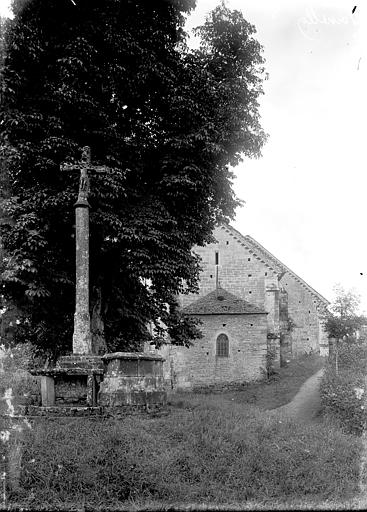 Le monument mesure 4,95 mètres de hauteur pour 1,96 mètre de largeur. Il repose sur un socle circulaire à trois marches ; le piédestal passe d'une base carrée à un profil octogonal, forme que reprend le fût. La croix, sobrement décorée, présente des extrémités moulurées, un centre ajouré de redents et des fleurettes sculptées. Sur un côté est sculpté en haut-relief un Christ en croix, sur l'autre une Vierge à l'Enfant ; chaque figure est surmontée d'un ange. Le petit autel ou reposoir, accolé au piédestal, est constitué de deux blocs verticaux soutenant une table en pierre. La chaire, placée sur la première marche, est construite en moyen appareil avec des pierres du pays ; elle forme un muret cintré à retours d'angle, haut d'environ 1 mètre, avec une face principale de 1,96 mètre reposant sur un socle à plinthe de 40 centimètres.
