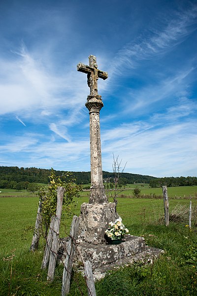 Croix de chemin, à l'intersection du chemin numéro 4 d'Houtaud aux Tourbières et d'un chemin d'exploitation, au droit de la parcelle ZA 44 (cad. non cadastre, domaine public) : inscription par arrêté du 22 novembre 1993