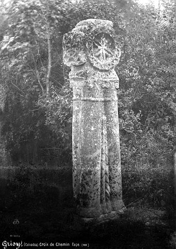 La croix romane de Grisy est une croix de chemin située sur le territoire de Grisy, commune associée à Vendeuvre, dans le Calvados. Elle se trouve au bord de la route départementale n°271, entre les bourgs de Grisy et de Vendeuvre. Les sources lui attribuent une origine aux XIe‑XIIe siècles. Elle est classée au titre des monuments historiques depuis le 26 septembre 1903. Lors de la construction de la voie ferrée de Mézidon au Mans au XIXe siècle, la croix fut déplacée de quelques mètres et quitta ainsi le territoire de son village d'origine. Les villageois la ramenèrent sans précautions et elle se cassa en deux, mais les dégâts furent réparés. Les communes rivales furent réunies en une seule en 1973. Taillée d'un seul bloc de calcaire, elle mesure environ deux mètres de haut. Elle présente une croix grecque posée sur quatre colonnes solidaires groupées en faisceau entre lesquelles, de face, s'insèrent deux cordons tressés. Les colonnes sont couronnées de chapiteaux ornés de volutes. Au centre de la croix, un fleuron en forme de rosace s'inscrit dans un cercle décoré de moulures en dents de scie. Les branches, biseautées et séparées par des modillons, sont ornées d'étoiles. Cette croix fait partie des rares croix de chemin romanes encore debout en Normandie, aux côtés de celles de Feuguerolles-Bully (Calvados), Neaufles-Saint-Martin (Eure) et Rouxmesnil-Bouteilles (Seine‑Maritime). Leur rareté s'explique par la fragilité du calcaire, l'ancienneté et les destructions liées aux guerres de religion et autres actes de vandalisme.