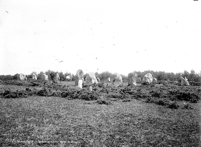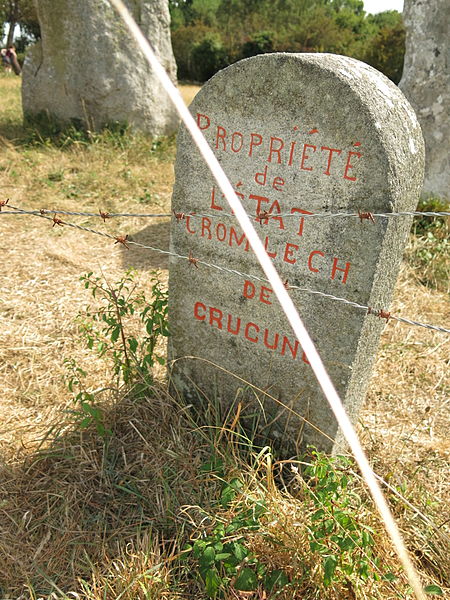 Le cromlech de Crucuno, situé dans le village de Crucuno à Plouharnel (Morbihan), est une construction mégalithique souvent présentée comme un observatoire astronomique daté du Néolithique, mais le monument visible aujourd’hui correspond en réalité à une restauration archéologique réalisée en 1883. Le premier relevé connu, établi par M. Vicars en 1832, montre 36 monolithes disposés en sept files. En 1847, Cayot-Delandre décrit plutôt « un groupe de menhirs confusément disposés » à l’est de Corconno. Un plan dressé par H. Dryden et W. C. Lukis représente le site sous une forme trapézoïdale comportant 20 monolithes sans pierre centrale. La restauration opérée par Félix Gaillard en 1883 a donné au monument une forme parfaitement rectangulaire composée de 22 pierres, toujours sans élément central. En 1973, A. Thom signale l’existence de deux dalles supplémentaires au centre du quadrilatère, dégagées par l’érosion. Les documents antérieurs à la restauration, notamment des relevés cadastraux, montrent que le site s’étendait sur une superficie beaucoup plus grande — au moins quatre fois celle de l’actuel quadrilatère — et comportait environ une cinquantaine de monolithes. Compte tenu des relevés antérieurs, il apparaît que Gaillard a probablement modifié la forme du monument pour la faire correspondre à ses théories sur l’astronomie préhistorique, et nombre d’études ultérieures s’appuient sur ce plan restauré pour avancer l’hypothèse d’un observatoire. Classé au titre des monuments historiques depuis 1889, le cromlech visible aujourd’hui forme un rectangle d’environ 35 m de long sur 26 m de large dont les côtés sont orientés selon les points cardinaux; ses diagonales sont alignées sur les levers et couchers solsticiaux. La configuration géométrique actuelle résulte donc de la restauration de Gaillard plutôt que d’une disposition incontestablement ancienne. Des publications et des ressources en ligne traitent du site, notamment des références bibliographiques récentes et un modèle construit par photogrammétrie, ainsi que des portails consacrés au mégalithisme et aux monuments historiques.