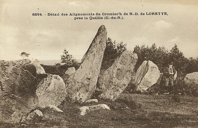 Le tertre tumulaire de Lorette, improprement appelé cromlech de Notre‑Dame de Lorette, se trouve au lieu‑dit Lorette sur la commune du Quillio, dans les Côtes‑d'Armor. Le monument est classé au titre des monuments historiques depuis le 29 mars 1926. Le tumulus a une forme rectangulaire, mesurant 20 m de longueur sur 7 m de largeur. Les grands côtés sont constitués de dalles généralement jointives et inclinées vers l'extérieur : seize dalles riches en quartz au nord et onze dalles en grès au sud. Les blocs du côté nord sont assez trapus et peu élevés, tandis qu'au sud ils sont beaucoup plus hauts. Les dalles d'angle sont renversées vers l'arrière ; celles des angles nord‑ouest et sud‑ouest sont brisées. Un menhir indicateur, désormais renversé et long de 2 m, est visible dans l'axe du monument, à 3 m à l'ouest. Le site a été fouillé en octobre 1958, mais l'acidité du sol n'a pas permis la conservation d'éventuels ossements. Le mobilier funéraire retrouvé est très réduit : la céramique se limite à des fragments de poterie chasséenne sans décor, assez fine, dure et rougeâtre, ainsi qu'un tesson légèrement plus épais montrant un début de fond plat un peu évasé. Le matériel lithique se compose d'un minuscule éclat de silex et d'outils en grès lustré, notamment trois pointes de flèches à tranchant transversal et deux lames. Les fouilles ont relevé plusieurs similitudes avec le tertre tumulaire de la Croix Saint‑Pierre, notamment le choix d'un lieu élevé peu propice à l'agriculture, la présence d'un menhir indicateur, la concentration des sépultures dans le tiers ou le quart oriental du tumulus et la pauvreté du mobilier funéraire. Les résultats des investigations ont été publiés, en particulier par Pierre‑Roland Giot et Jean L'Helgouach, et le site est également mentionné dans l'inventaire réalisé par Loïc Langouët.