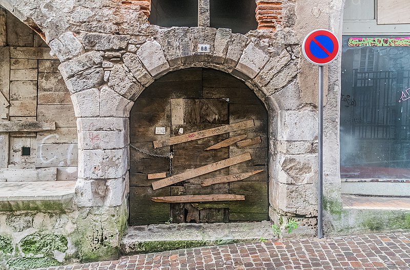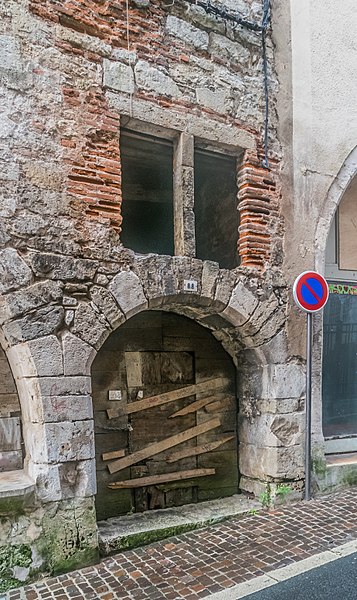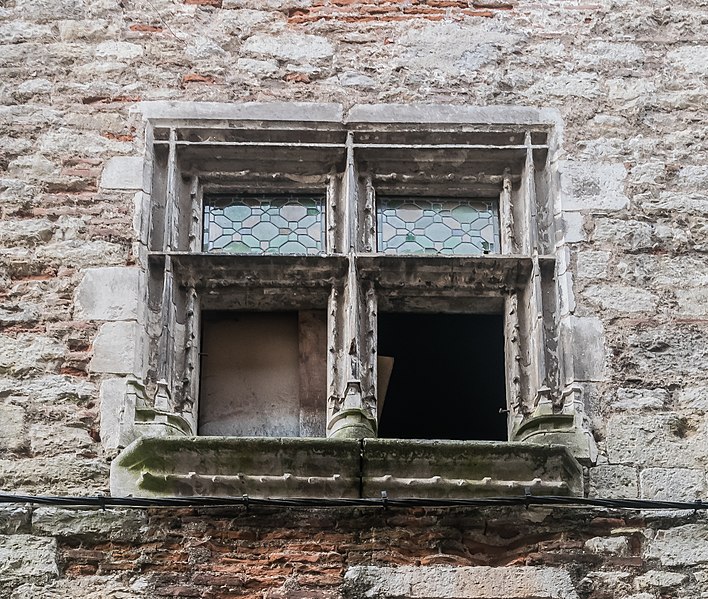 La demeure médiévale se compose de deux unités d'habitation distinctes, formées aux XIIIe et XIVe siècles, qui partageaient une cour et un passage communs. Le corps sur rue conserve des vestiges d'un bâtiment d'un étage du XIIe siècle, tandis que sa façade actuelle, datée du XVe siècle, intègre une arcade de boutique provenant du XIIe siècle. À l'intérieur subsistent des cheminées du XVe siècle. Le bâtiment arrière et l'escalier en équerre situés dans la cour remontent au XIIIe ou au XIVe siècle. Au XVe siècle, un étage est ajouté au corps sur rue, la façade est entièrement reconstruite et un escalier en vis vient compléter l'escalier antérieur. Quelques aménagements ont été réalisés au cours du deuxième quart du XVIIe siècle; une porte comporte une date peinte, 1669.
