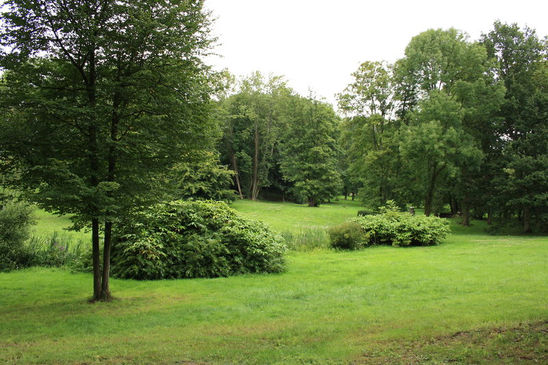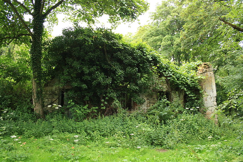 Parmi les fabriques encore présentes, la Colonne détruite, construite en 1781, est la plus remarquable : il s'agit d'un fût de 15 mètres de diamètre s'élevant à environ 25 mètres, où s'organisaient sur quatre niveaux des appartements raffinés desservis par un escalier hélicoïdal. Malgré l'extérieur volontairement ruiné, l'intérieur de la Colonne était richement aménagé, avec cheminées en marbre blanc, miroirs, tentures en toile de Jouy, mobilier en acajou et une cuisine desservie par un tunnel depuis les communs. Le Temple au dieu Pan, construit vers 1775, évoque la Grèce classique ; il comprend un avant‑corps semi‑circulaire à colonnes toscanes ouvrant sur une salle meublée et ornée à l'origine de marbres et sculptures. Le petit autel votif situé au sud de la Colonne repose sur un socle circulaire et portait autrefois un vase ovoïde décoré de têtes de bélier et de guirlandes, visible depuis le cabinet de travail de Monville. Le Théâtre découvert, bordé autrefois d'ormes formant un berceau, conservait des pots à feu chinois et un mur de scène qui portait un bas‑relief représentant Bacchus enfant ; il servait à la fois d'espace dramatique et de décor panoramique paysager. La Glacière pyramide se compose d'une cuve demi‑barrique profonde de six mètres, d'un soubassement carré et d'une pyramide ; elle servait à conserver la glace et les denrées périssables grâce à un système d'empilement et d'isolation et à un accès orienté au nord. La Tente tartare, dressée sur l'île du Bonheur et reconstruite en 1989, est une structure à armature de bois recouverte de tôle peinte à larges rayures et tendue intérieurement de toile de Jouy ; elle évoquait l'exotisme et servait de salle d'armes. D'autres éléments encore visibles incluent le temple du repos, des ruines de serres chaudes, l'église gothique et divers aménagements paysagers illustrant l'originalité du projet de Monville.