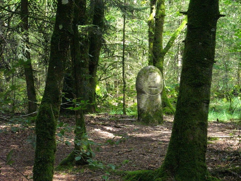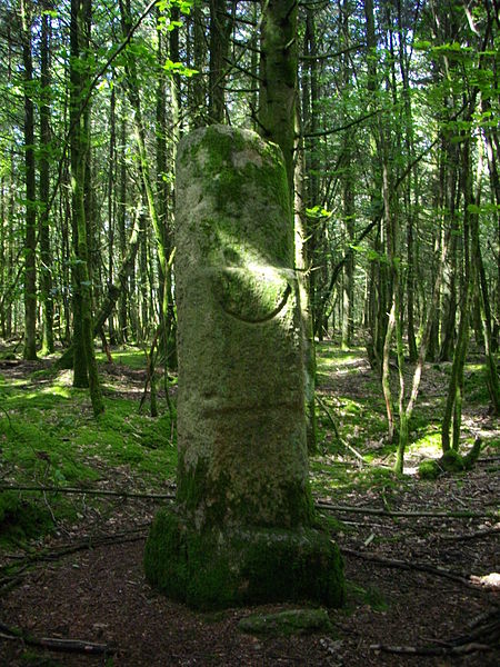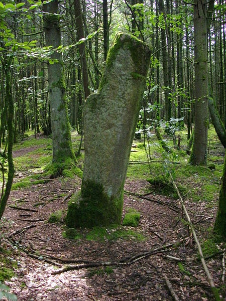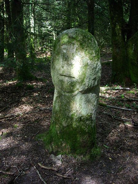 Deux pierres sculptées, dites « Babouin » et « Babouine » (ou Jean Babouin et Jeanne Babouine), sont situées à Trédion (Morbihan) et sont supposées être d'anciens menhirs. Elles sont mentionnées pour la première fois dans l'Essai sur les antiquités du Morbihan de l'abbé Mahé en 1825, et en 1847 Cayot-Délandre signale que la plus grande est couchée. Les pierres ont été classées au titre des monuments historiques par arrêté du 10 juillet 1933. Les deux blocs sont en granite à deux micas de couleur gris-bleu, d'une grande dureté. Jean L'Helgouach a émis l'hypothèse qu'il s'agirait de deux parties d'une même stèle ; elles pourraient correspondre à des menhirs anciens retaillés ultérieurement et avoir fait l'objet de cultes païens. Le menhir « Babouin », situé le plus à l'est, mesure environ 1,45 m de haut hors sol, 65 cm de largeur maximale et présente une épaisseur variant de 0,30 m à la base à 0,50 m dans la partie supérieure. La partie sommitale porte une sculpture figurant un visage : les yeux sont rendus par des traits rapprochés, le nez est large et épais, la bouche est un trait en creux, et l'ensemble est encadré par un cercle gravé en bordure. Le menhir « Babouine », retouché sur toute sa hauteur et haut de 3,25 m, présente des parties en gradin d'épaisseur variable ; sa partie centrale, proéminente, pourrait représenter une poitrine féminine soulignée par un arc de cercle gravé pouvant évoquer un collier. La partie supérieure du bloc comporte d'autres gravures difficilement identifiables. L'origine des noms demeure obscure, bien qu'un certain Jean Babouin se voit attribuer en 1426 par le duc Jean V l'île de Groix en récompense de son dévouement.