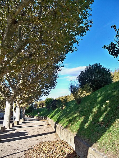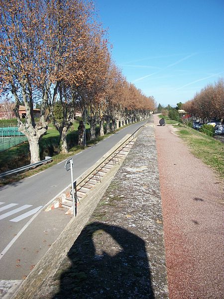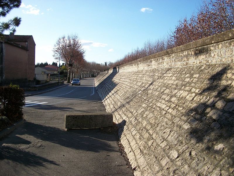 Du côté intérieur, la digue est bordée par un cours qui réunit une voie de circulation et, au pied de l'ouvrage, un large espace gravillonné planté de platanes, utilisé alternativement comme stationnement et terrains de boules, typique des villages du Sud-Est. À partir de la Porte de Castellan et dans le sens horaire, ces aménagements portent les noms de cours Jean-Moulin, cours Gabriel-Péri, cours Aristide-Briand, cours Frédéric-Mistral et cours Guy-Mocquet. Côté extérieur, la digue longe plusieurs voies : l'avenue du 8-Mai-1945, la D 17, la D 237 (route de la CNR) et l'avenue Emmanuel-Vitria.