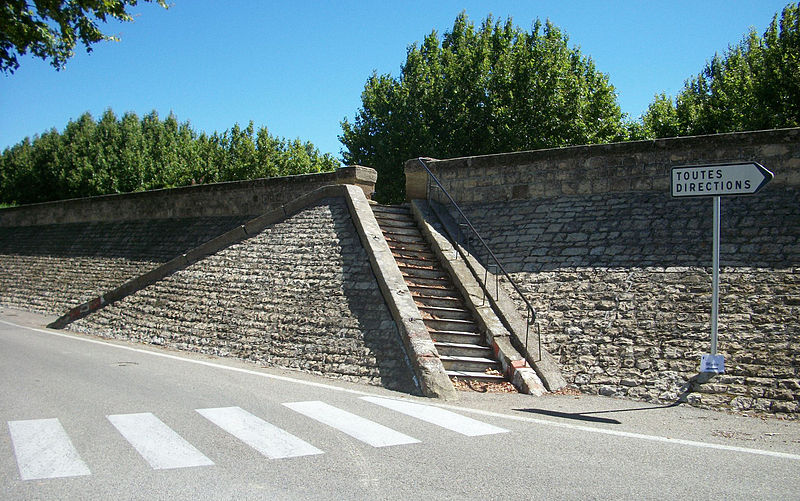La digue comporte deux portes : la Porte Léon Roche (anciennement Porte d'Orange), à l'est, et la Porte de Castellan, au nord-ouest. Chaque porte était équipée de deux rainures pour la mise en place de batardeaux ; ces batardeaux furent utilisés pour la dernière fois lors des inondations de décembre 2003 et, lors d'une modernisation en 2012, on n'a conservé que la rainure extérieure de chaque porte.