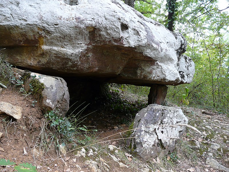 Orienté NNO–SSE, le dolmen comporte cinq orthostates. Les deux supports du côté est sont perpendiculaires à la dalle nord et les orthostates ne sont enfoncés dans le sol que de quelques centimètres. La dalle du côté sud semble déplacée par rapport à sa position originelle : elle n'est plus alignée ni de la même hauteur que les autres. La table, de forme ovale, mesure 3,50 m de longueur pour 2,50 m de largeur ; deux orthostates ne la soutiennent plus. Toutes les dalles sont en grès rouge. La chambre sépulcrale, qui s'ouvre à l'est, est large de 1,20 m à l'entrée, 1,52 m au centre et 1,29 m au fond, pour une longueur totale de 2,34 m. Il est probable que la construction du chemin reliant Saint-Chamassy à Bigaroque, qui longe le côté ouest du dolmen, a entraîné le prélèvement ou le déplacement de dalles originelles afin d'éviter l'effondrement de la table. La seule dalle conservée du côté ouest présente des rainures droites d'une profondeur maximale de 1,5 cm et aurait pu servir de polissoir.