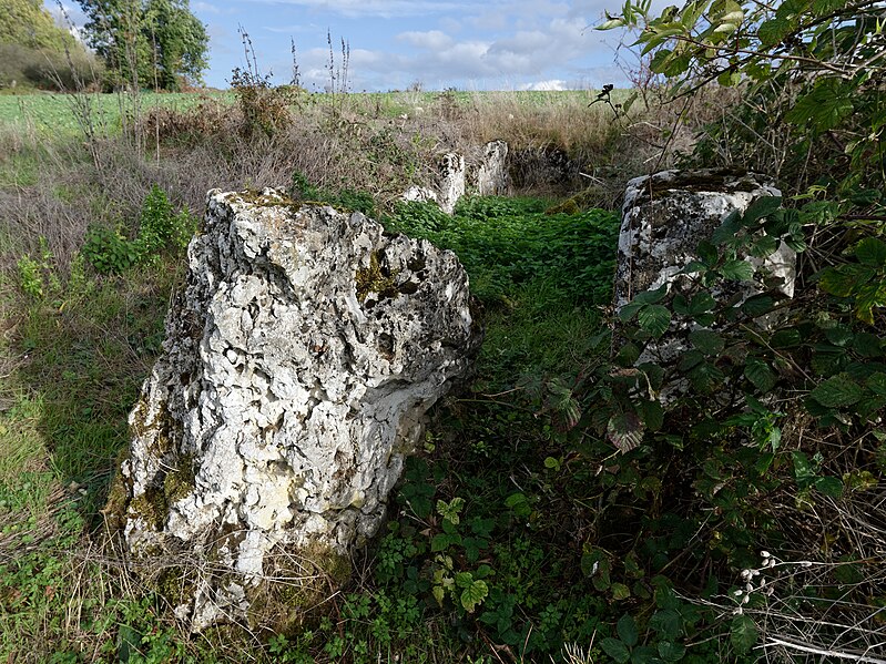 L'allée couverte de Copierres, dite aussi dolmen Vieille Cote, se situe sur la commune de Montreuil-sur-Epte (Val-d'Oise). Elle a été découverte par le préhistorien Émile Collin, qui, en ramassant des silex lors d'une prospection, entreprit la fouille et publia deux courts rapports. L'édifice a été classé au titre des monuments historiques le 7 mai 1895 et un rapport détaillé d'Adrien de Mortillet a été publié en 1906. Installée sur un coteau à 118 m d'altitude, l'allée est orientée ouest-nord-ouest / est-sud-est, l'entrée s'ouvrant à l'ouest-nord-ouest, et a été taillée dans un sous-sol calcaire. Sa chambre, longue d'environ 15,30 m, se compose de trois tronçons successifs construits différemment, sans antichambre et avec une entrée de type singulier. La largeur de la chambre varie de 2,12 m au chevet à 1,40 m à l'entrée, et sa hauteur décroît de 2,15 m au fond à 0,60 m près de l'entrée. Le chevet est formé d'une unique grande dalle haute de 2,15 m et large de 2,40 m. Du chevet vers l'entrée, le premier tronçon (environ 7,50 m) est délimité par des orthostates bien alignés — sept sur le côté nord et six sur le côté sud — d'une hauteur moyenne d'environ 2 m et présentant une face intérieure lisse. Le second tronçon, sur les cinq mètres suivants, comporte des dalles moins bien alignées et de moindre hauteur (en moyenne 1,15 m), et les intervalles entre dalles des deux premières parties ont été obturés par des plaquettes empilées. Le dernier tronçon est bordé de murs en plaquettes d'environ 0,60 m de hauteur, se terminant en demi-cercle près de l'ouverture sous une table de couverture de 0,40 m d'épaisseur. Le sol de l'allée était entièrement dallé ; seule la table de couverture de l'entrée était encore en place, les autres étant tombées dans l'allée ou ayant été enlevées antérieurement. Bien que le rapport de fouille ne mentionne aucun tumulus, c'est l'émergence d'un tertre au milieu du champ qui avait attiré l'attention d'Émile Collin.