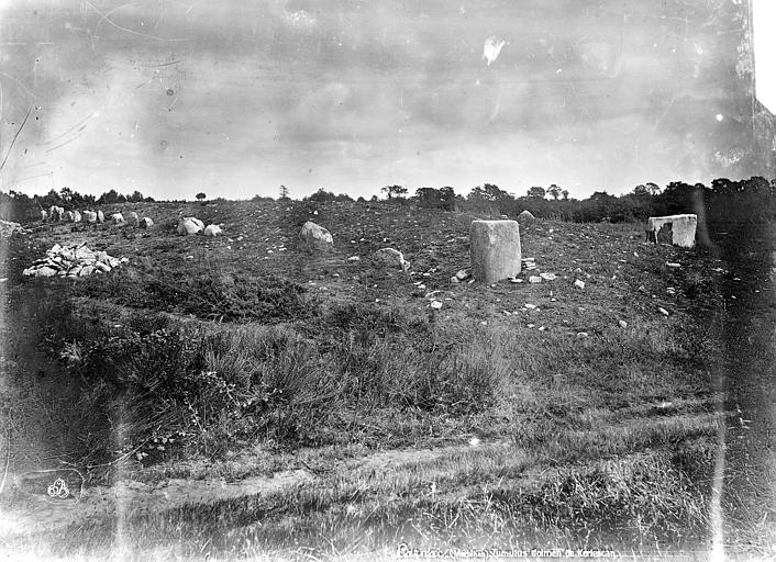 Les menhirs les plus élevés sont dressés à proximité de l'enceinte et la hauteur moyenne décroît vers l'est, tombant à moins d'un mètre à l'extrémité orientale de l'alignement. Le site présente un dénivelé positif de six à sept mètres entre ses extrémités est et ouest, si bien qu'un observateur placé à l'extrémité orientale a l'impression que les files montent vers l'enceinte occidentale. Selon Le Rouzic, la surface du site a livré plusieurs haches polies, quelques pointes de flèche à pédoncule et ailerons, ainsi que de nombreux éclats de silex.